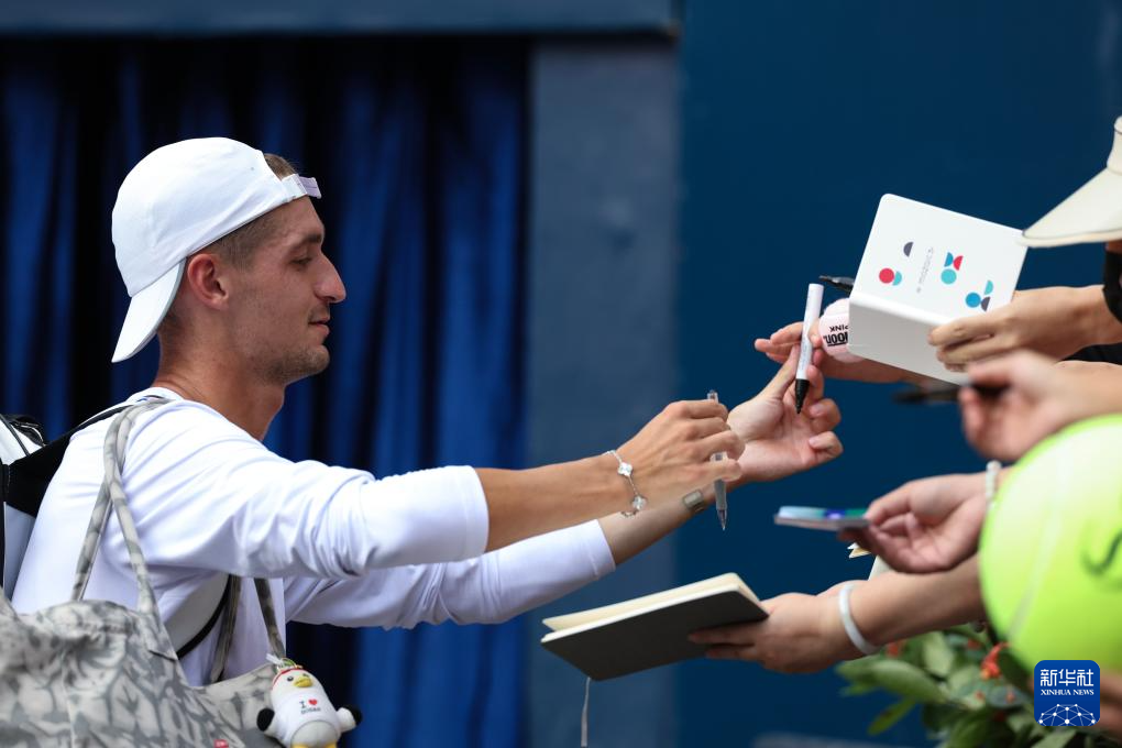 9月25日,阿特马纳(右)在比赛后在摄像镜头前签名。