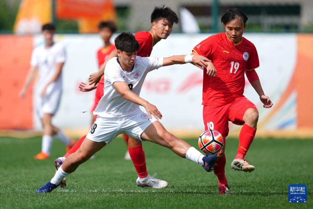 9月26日,北京航空航天大学队球员李嘉琦(中)在比赛中拼抢。