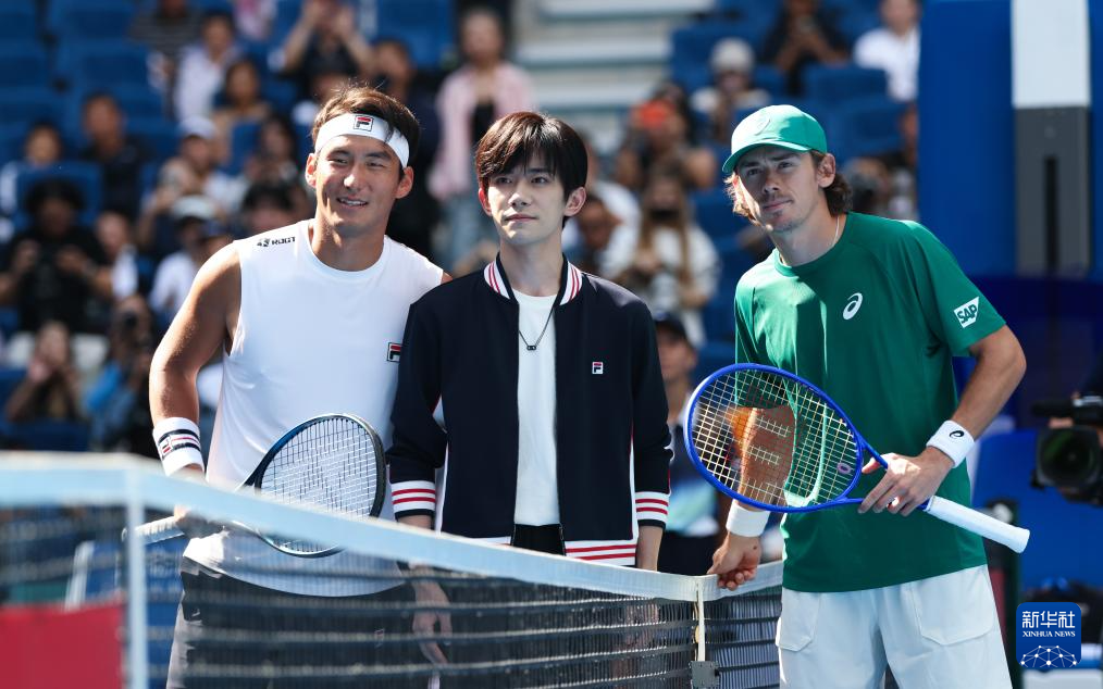 9月26日,布云朝克特(左)、德米纳尔(右)和挑边嘉宾易烊千玺在比赛前合影。