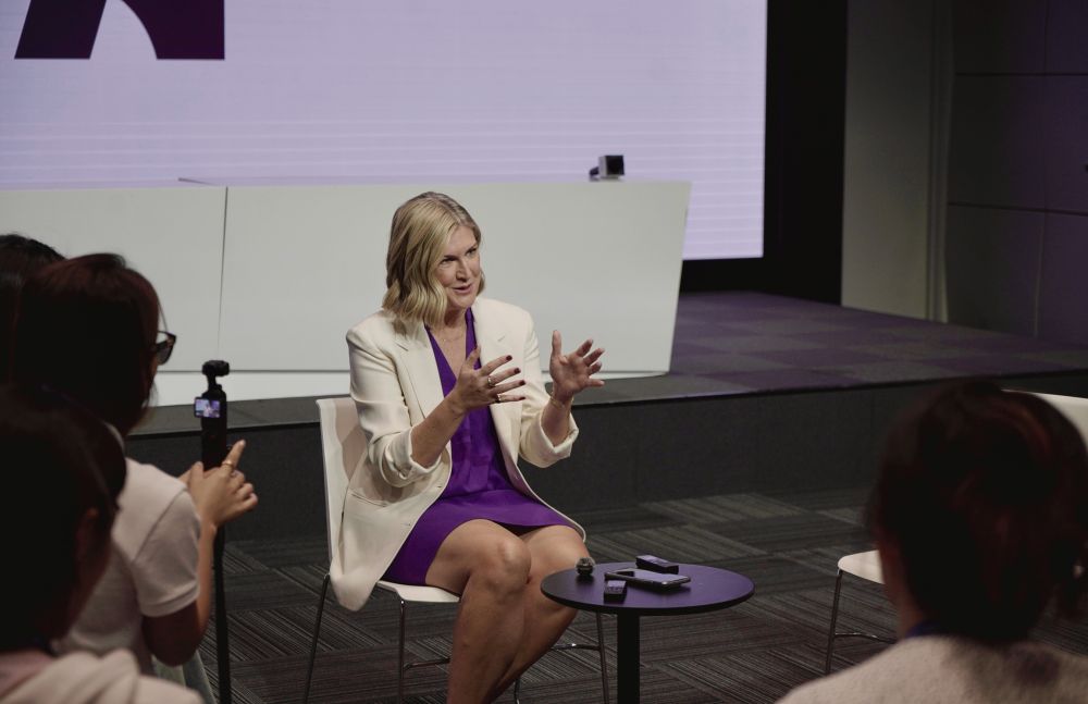 WTA(女子网球协会)首席品牌官萨拉·斯旺森在接受记者采访