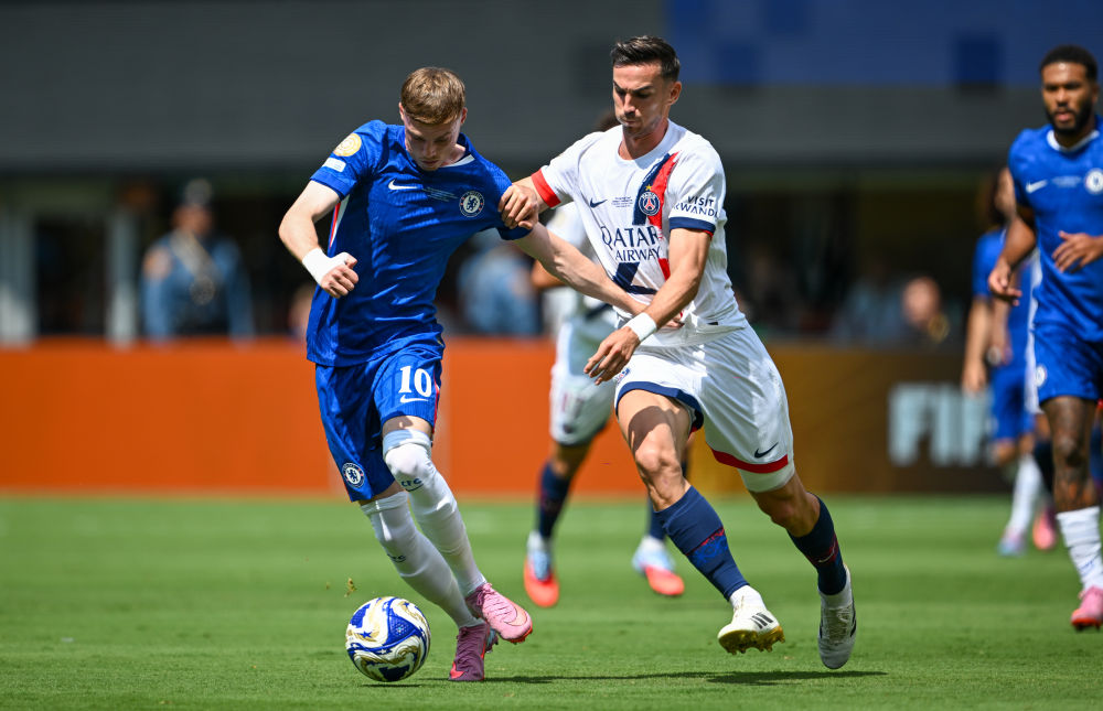 7月13日,切尔西球员帕尔默(左)在2025年国际足联俱乐部世界杯(世俱杯)决赛中。新华社记者 吴晓凌 摄