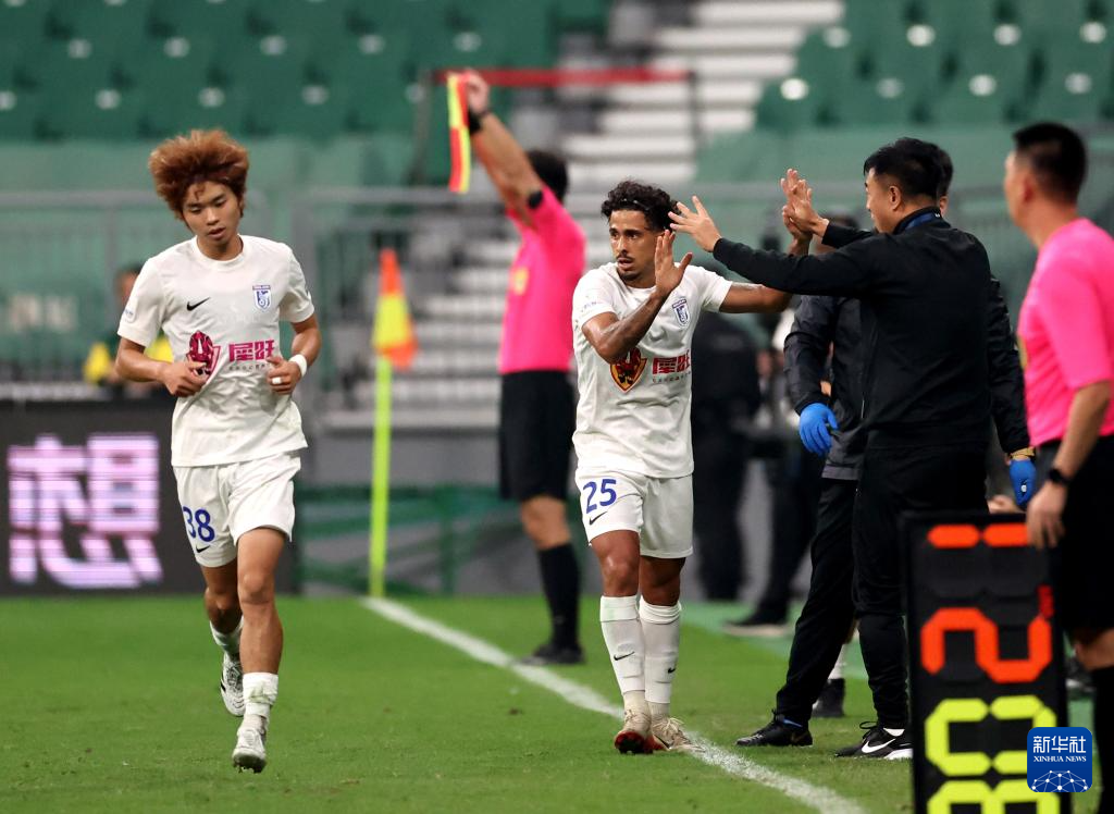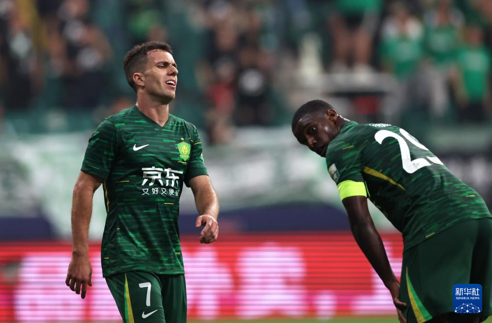 9月26日,北京国安队球员塞尔吉尼奥(左)错失进球机会后。