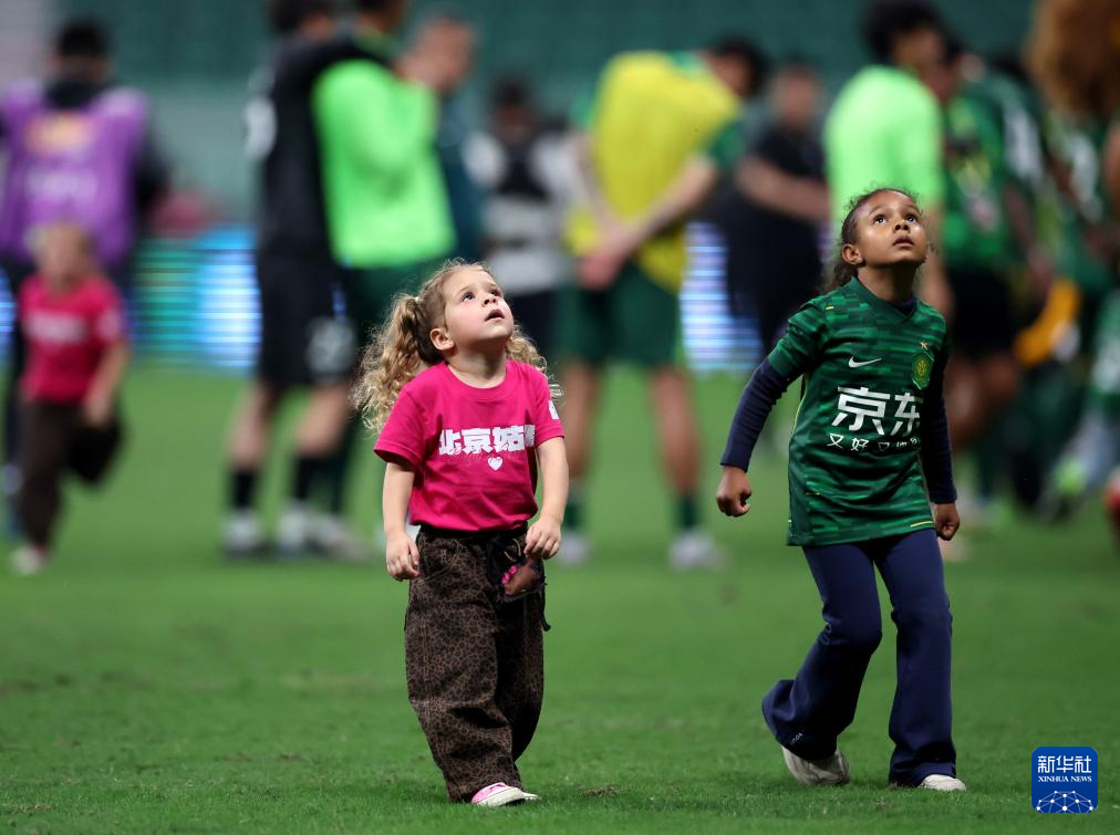 9月26日,两名北京国安队球员的孩子在比赛后。