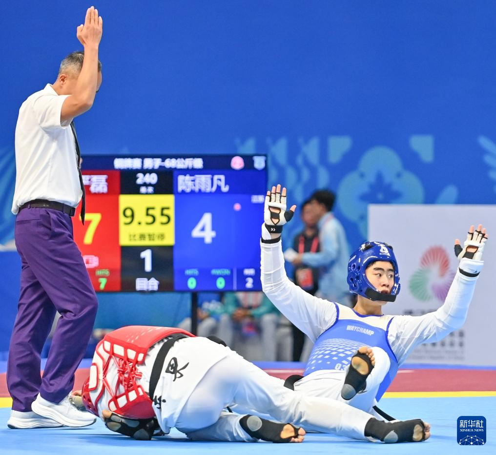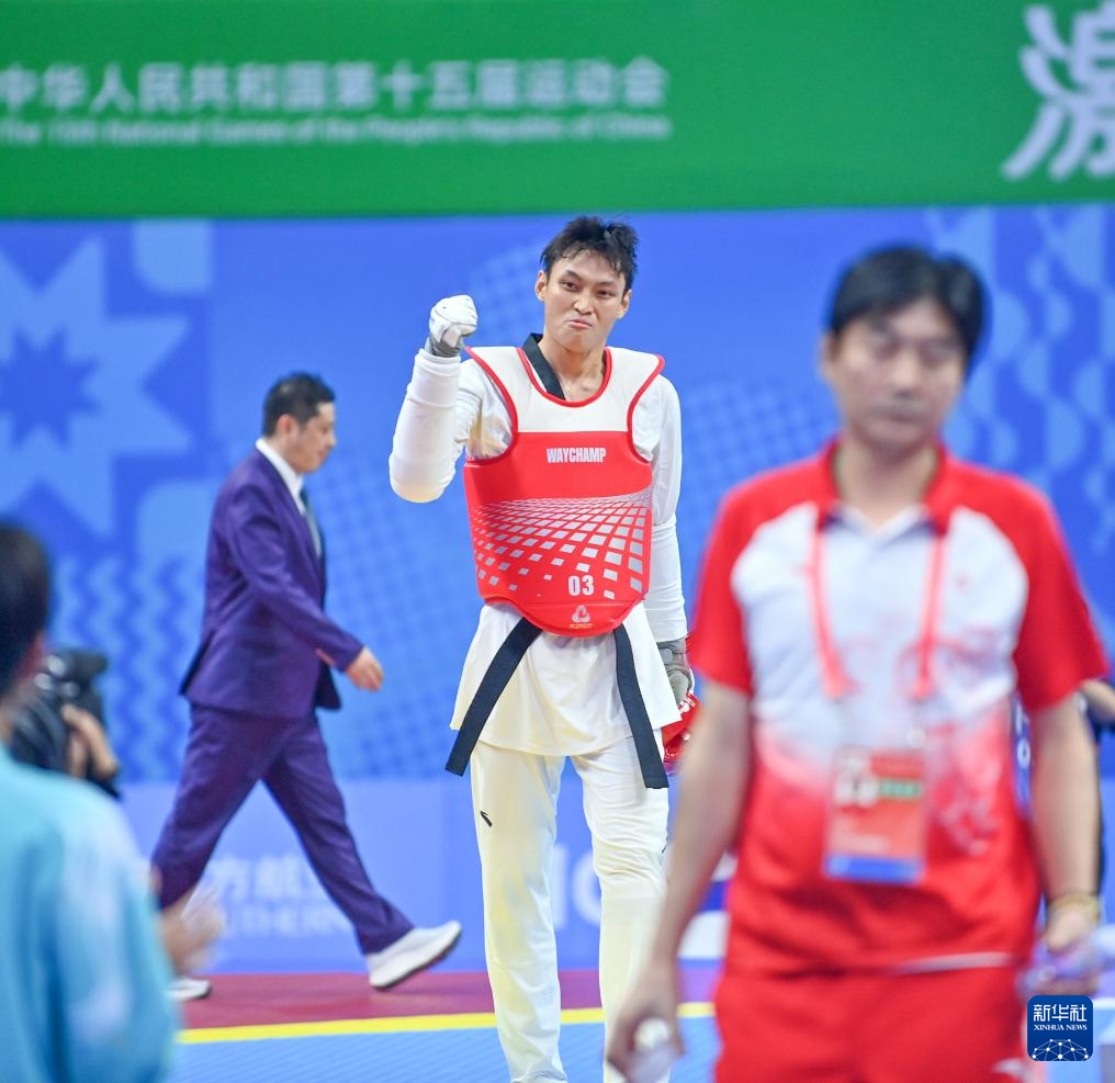 当日,第十五届全运会跆拳道项目男子68公斤级铜牌赛在广东惠州举行。