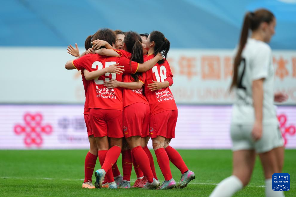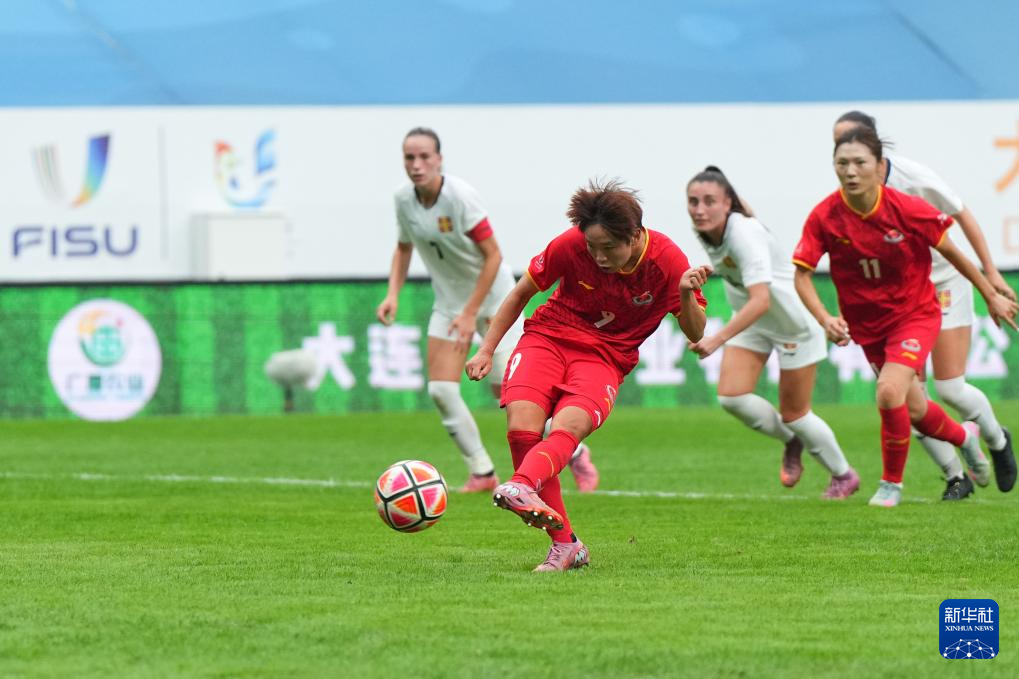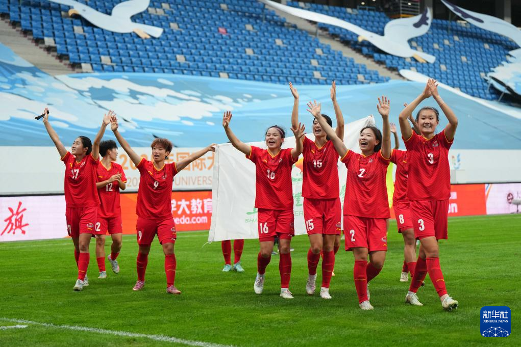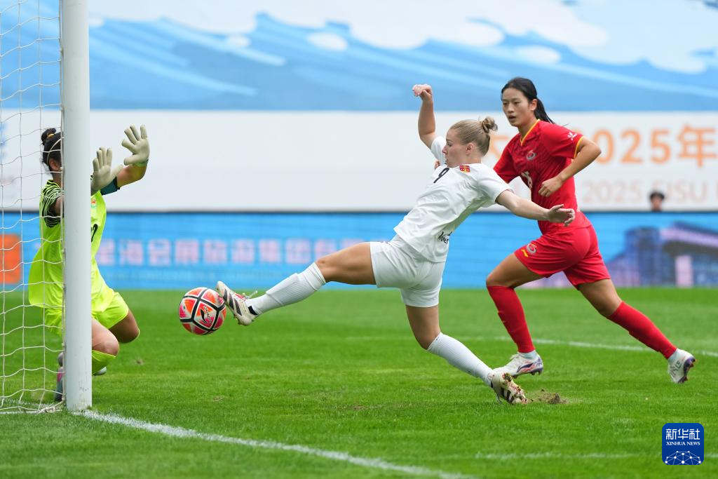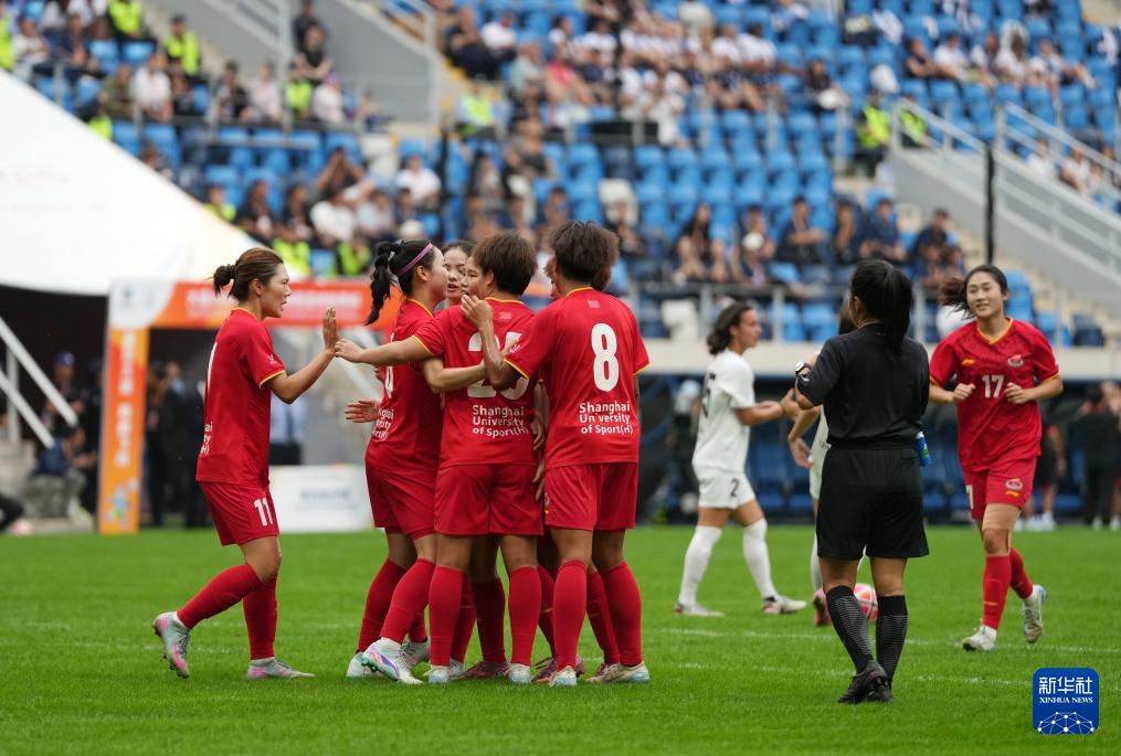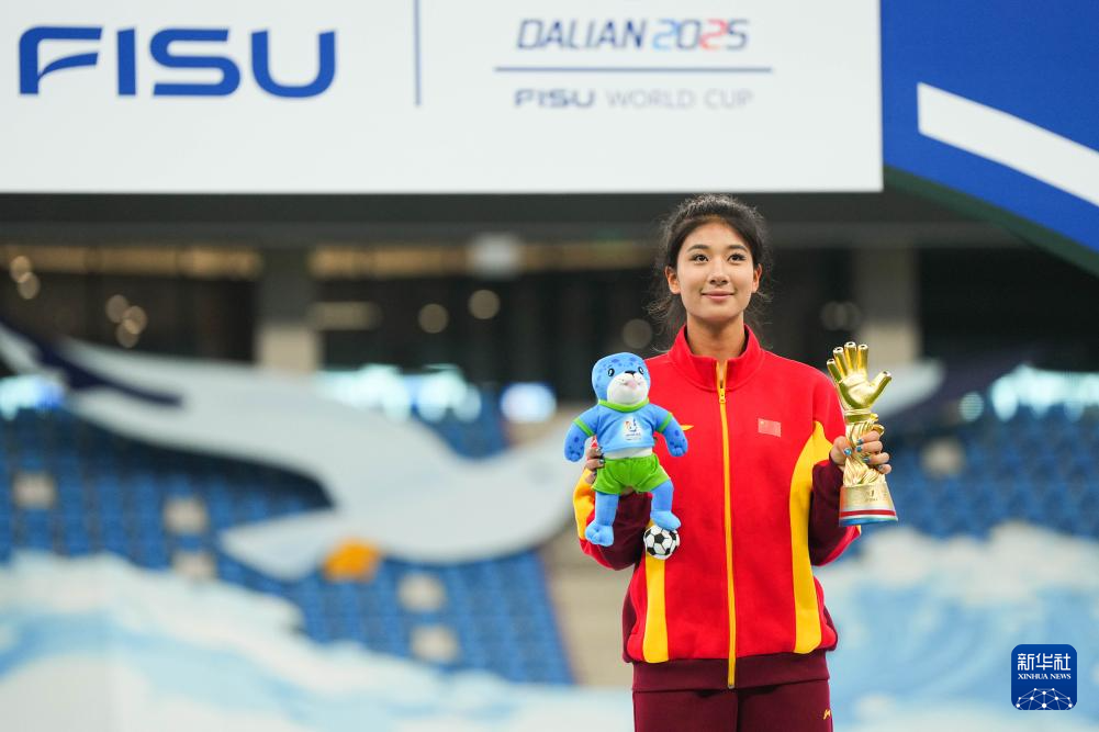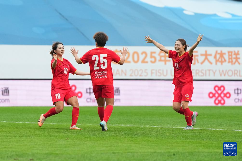 当日,在大连举行的2025年国际大体联足球世界杯女足决赛中,中国上海体育大学女足3比1战胜加拿大拉瓦尔大学女足,夺得冠军。
