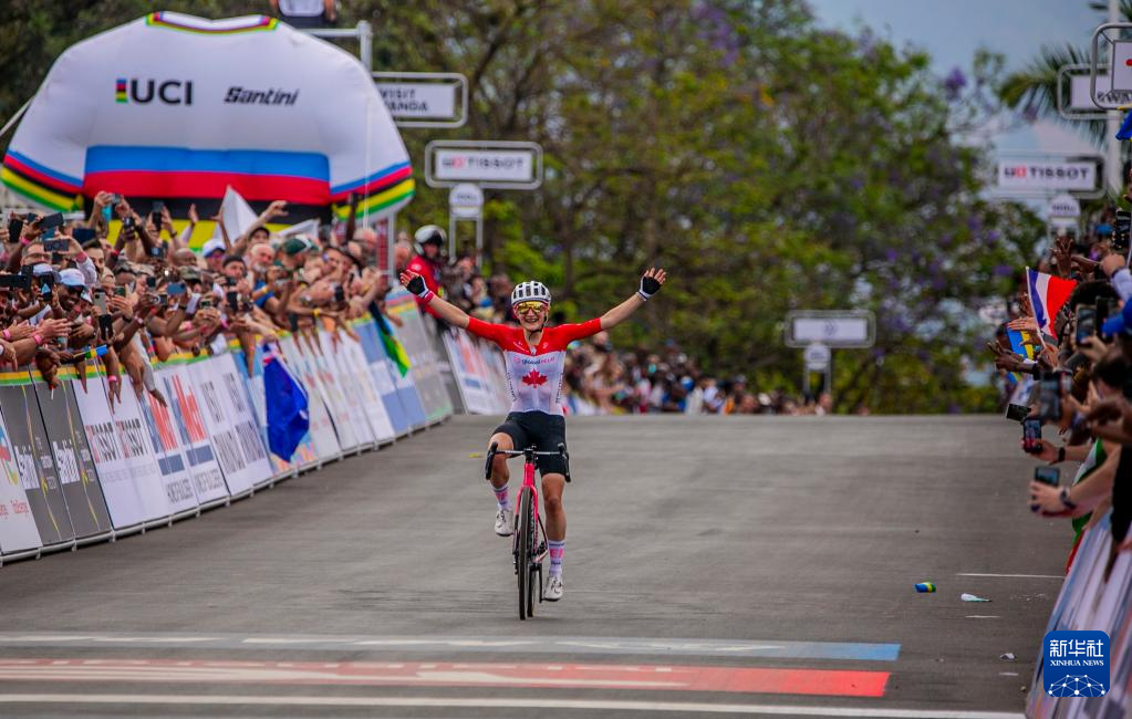 9月27日,加拿大选手瓦利埃在比赛中冲过终点后庆祝。