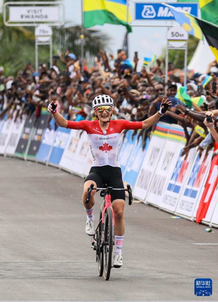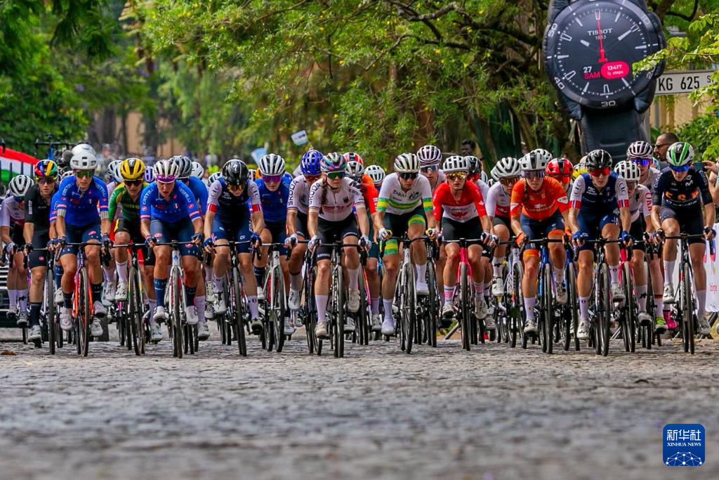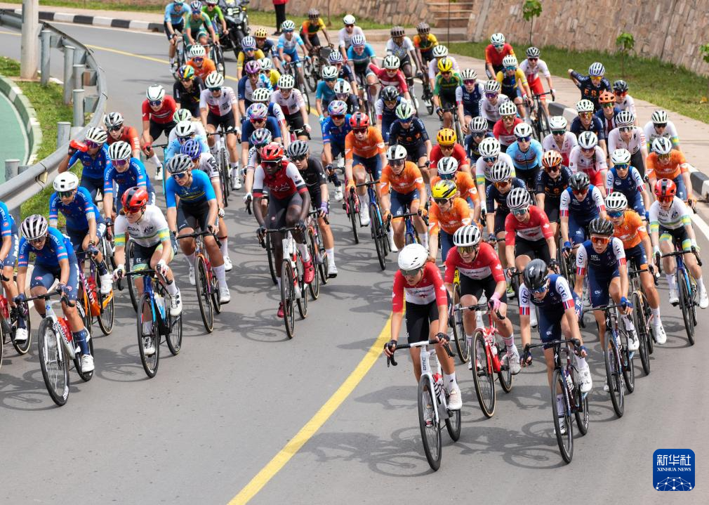 当日,2025年公路自行车世锦赛女子精英组比赛在卢旺达首都基加利举行。