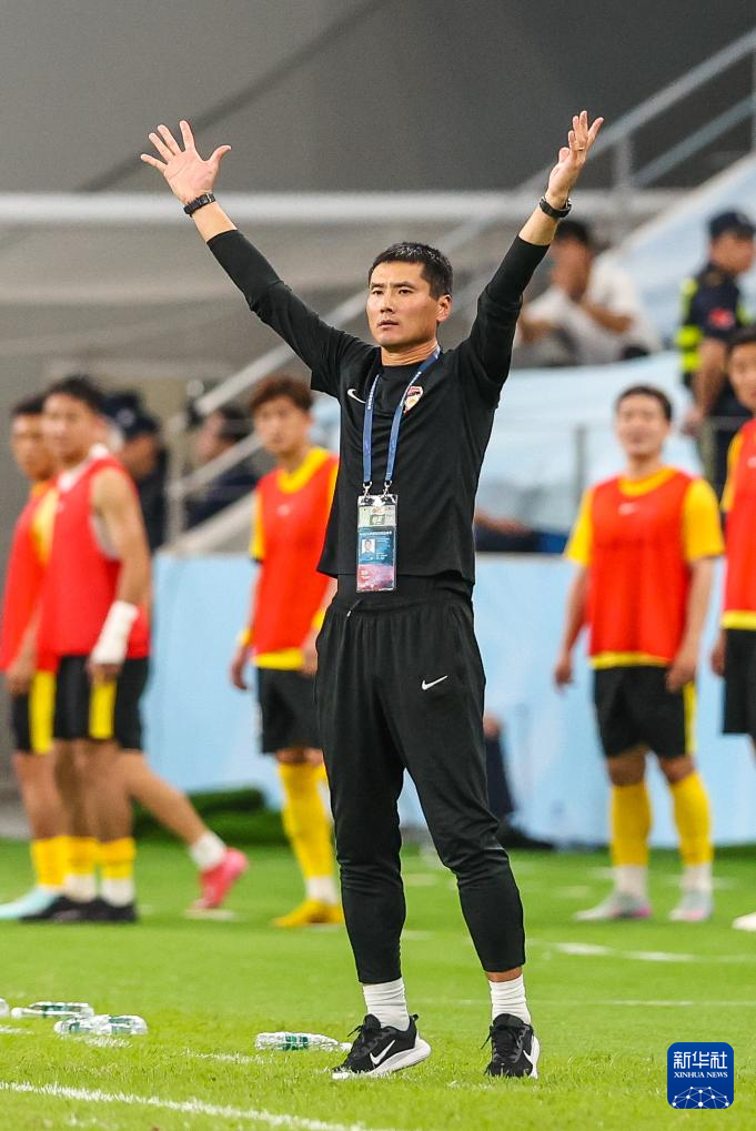 9月28日,青岛西海岸队主教练邵佳一在场边指挥。