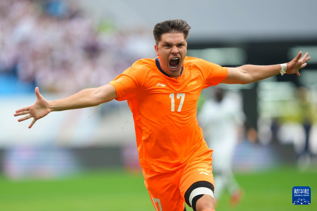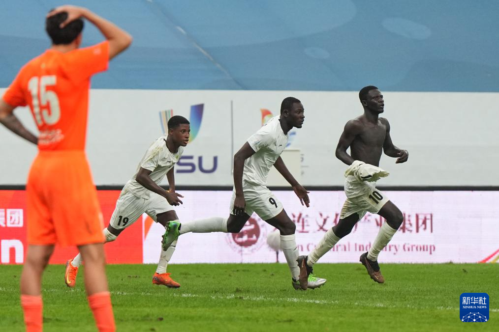 9月28日,发展研究大学队球员苏莱曼纳(上右二)在比赛中破门扳平比分。