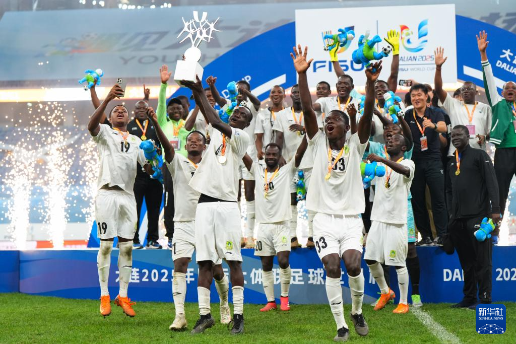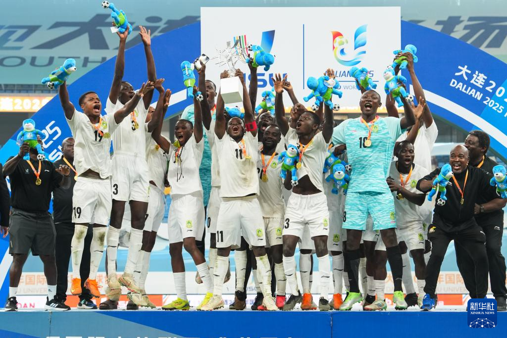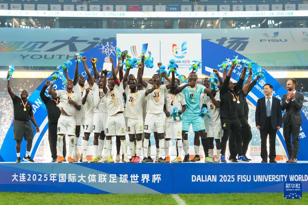 当日,在辽宁大连举行的2025年国际大体联足球世界杯男子组决赛中,加纳发展研究大学队通过加时赛2比1战胜巴西保利斯塔大学队,夺得冠军。