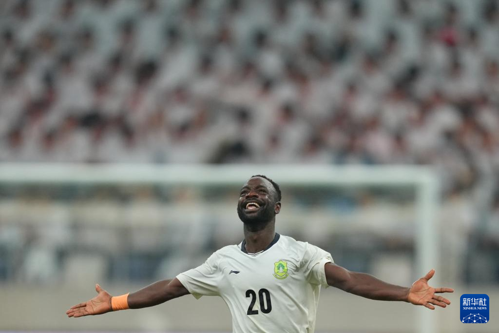 9月28日,发展研究大学队球员苏莱曼纳(右)在扳平比分后庆祝。