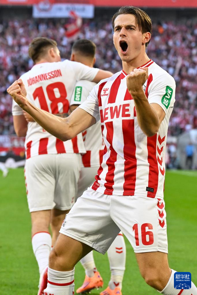 9月28日,科隆队球员卡明斯基在比赛中庆祝得分。