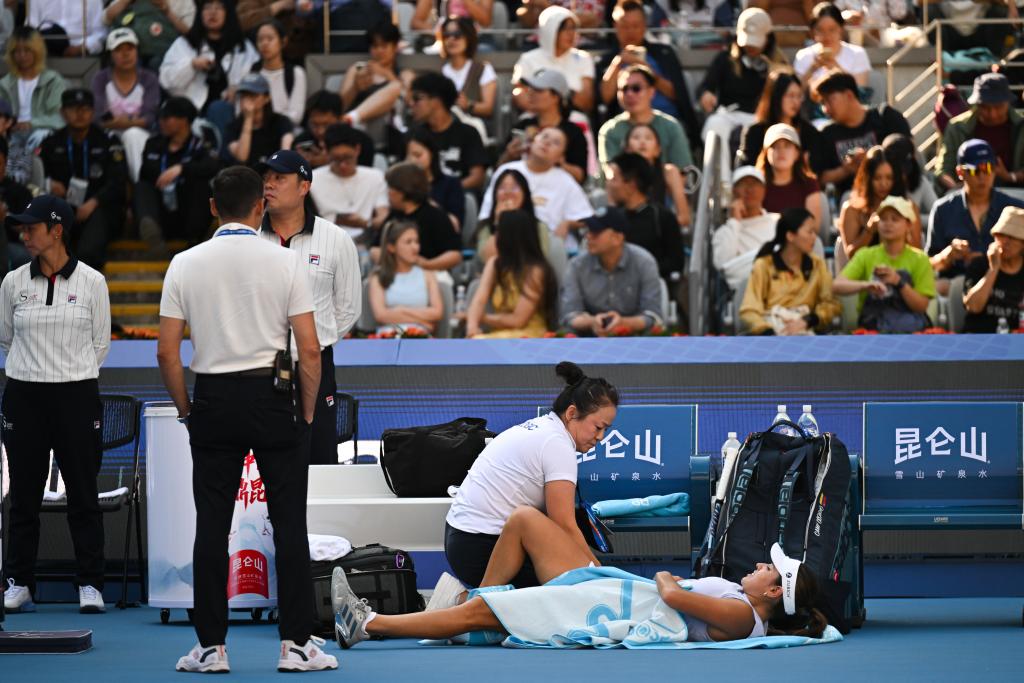 进入第三盘,诺斯科娃先声夺人,很快建立3:0的领先优势。局间休息时,医务人员上场与郑钦文交流。短暂沟通后,郑钦文选择退赛,比赛就此结束。