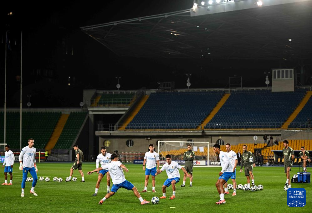 当日,西班牙皇家马德里队在哈萨克斯坦阿拉木图中央体育场进行赛前训练,备战次日与阿拉木图凯拉特队的欧冠联赛阶段次轮比赛。