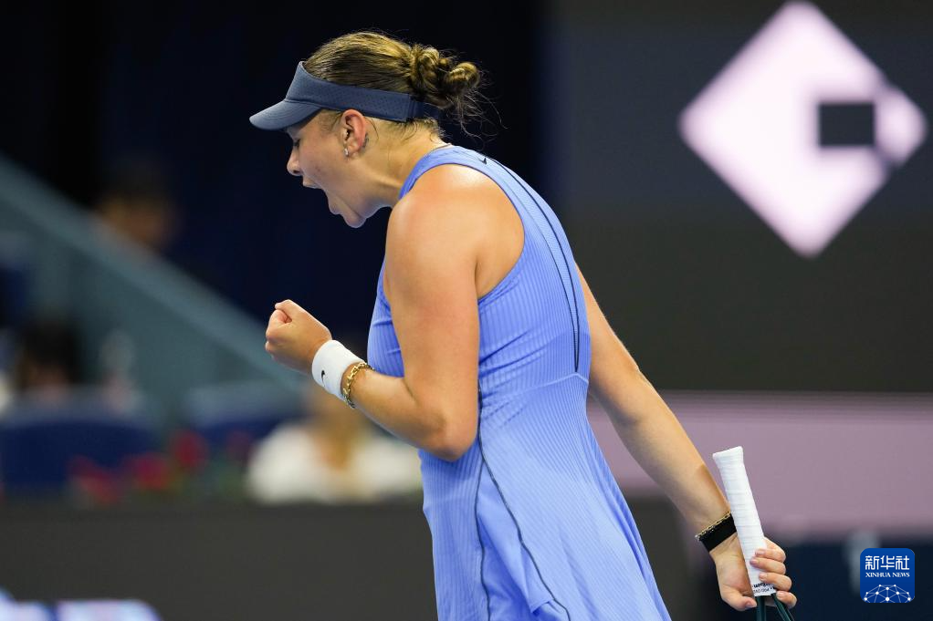 9月30日,阿尼西莫娃庆祝比赛胜利。
