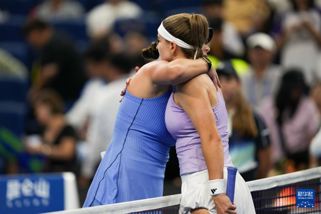9月30日,阿尼西莫娃(后)和穆霍娃在赛后相互致意。
