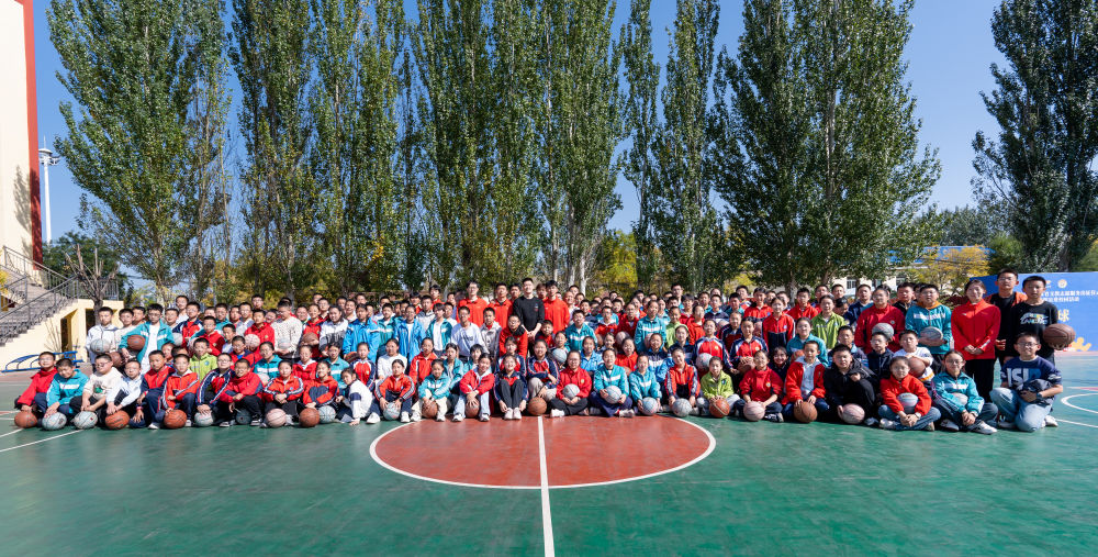 篮球场上,张宁亲自示范,手把手地指导孩子们运球、传球、投篮等基础动作,并向他们传授球场经验。