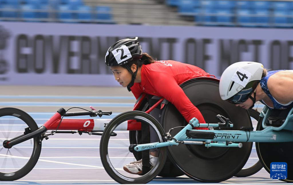 10月1日,中国选手周召倩(左)在女子1500米T54级比赛中。最终,她获得该项亚军。