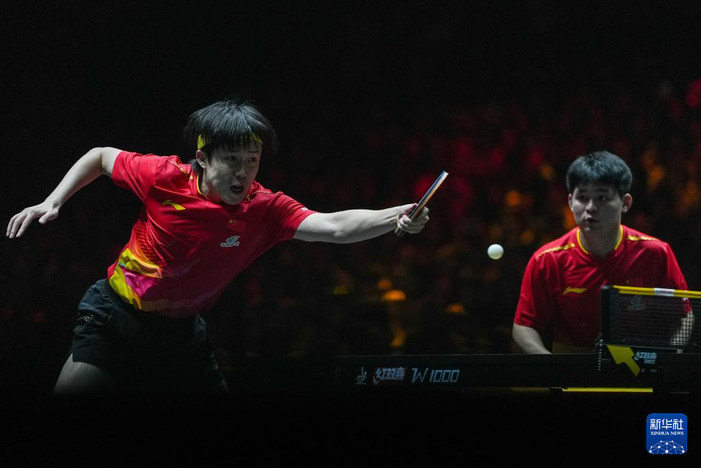 10月1日,中国组合林诗栋/王楚钦(左)在比赛中。