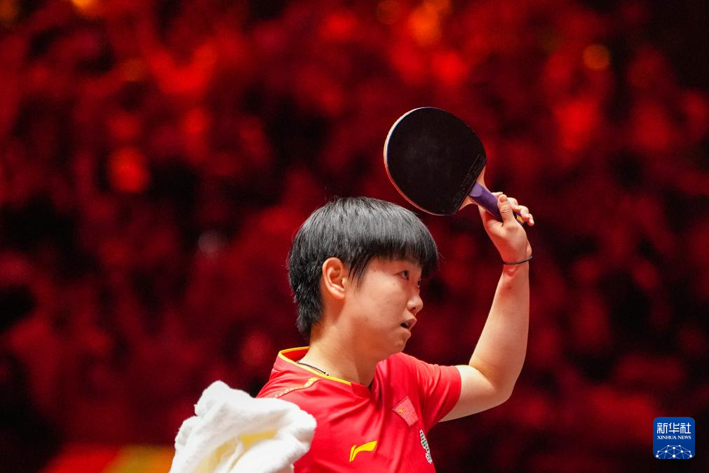 10月3日,孙颖莎在比赛结束后向观众致意。
