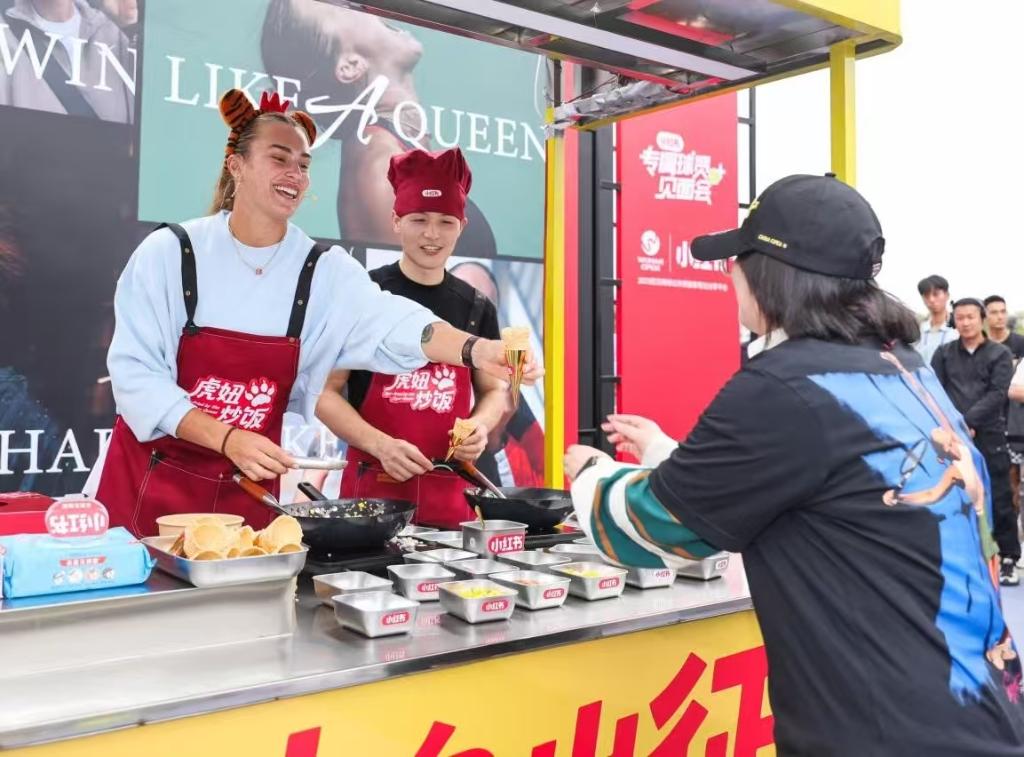 10月4日,萨巴伦卡在武网参加球迷见面活动时化身厨师,现场进行了炒饭演示。