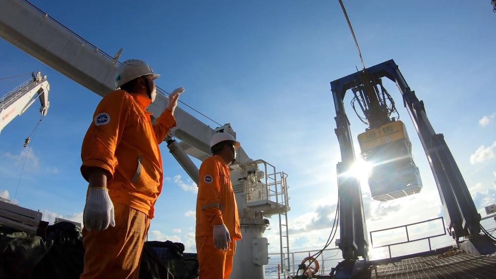 9月18日,“海洋地质二号”科考船抵达目标海域。下午,负责本次采集作业的4500米级深海遥控潜水器——“海马”号(ROV)开始下潜。