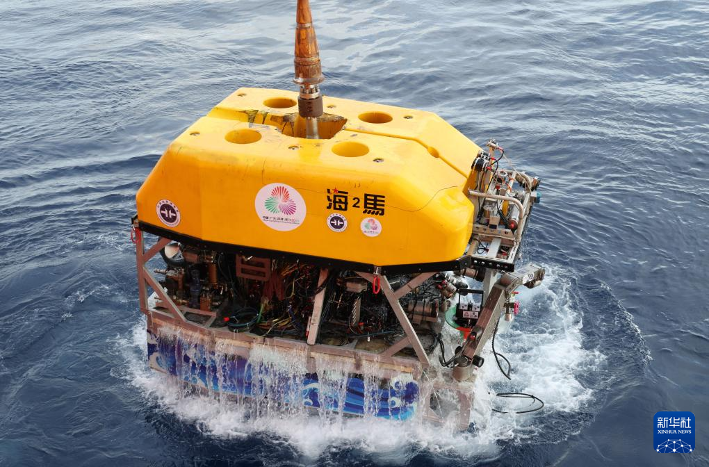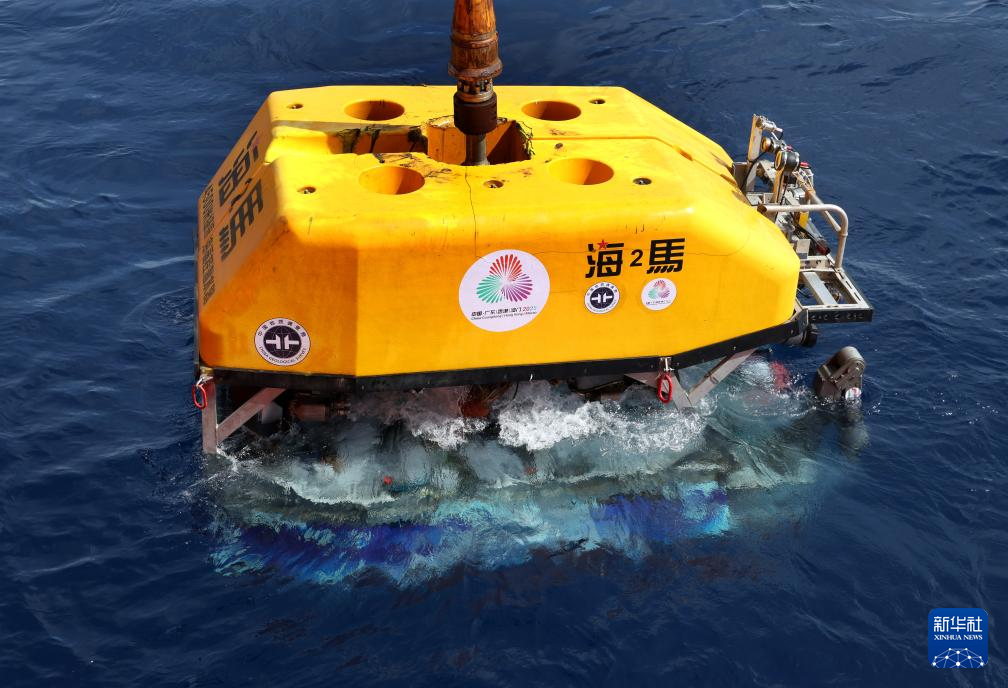 “海洋地质二号”科考船搭载“海马”号深海遥控潜水器在南海北部进行“源火”采集(9月18日摄)。