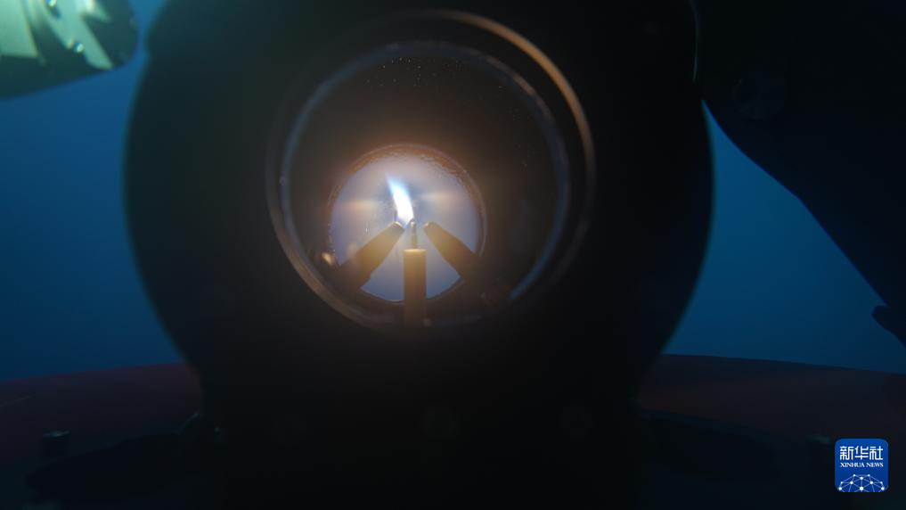 采火装置在海底成功引燃“源火”(9月18日摄)。