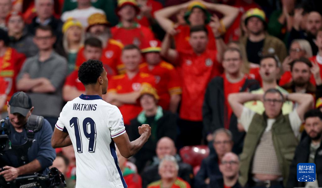 10月9日,英格兰队球员沃特金斯庆祝进球。