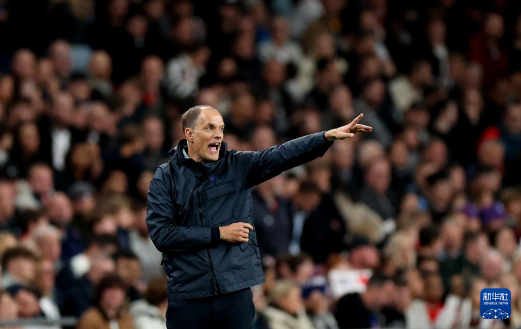 10月9日,英格兰队主教练图赫尔在场边指挥。