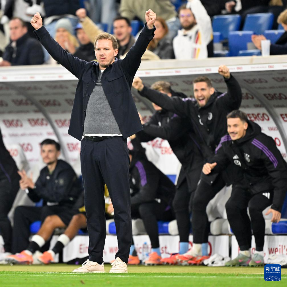 10月10日,德国队主教练纳格尔斯曼在场边欢呼。