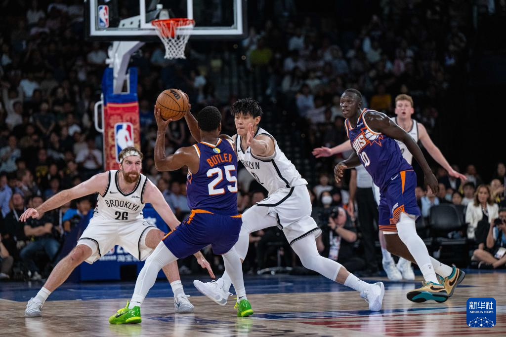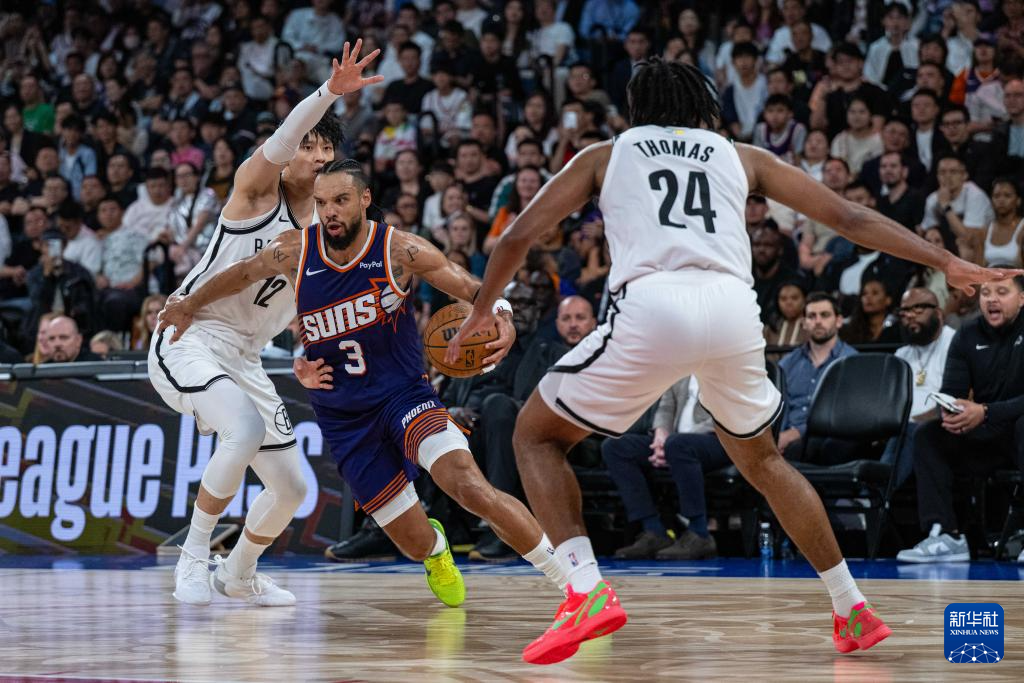 当日,在澳门威尼斯人综艺馆进行的一场美职篮(NBA)季前赛中,菲尼克斯太阳队132比127战胜布鲁克林篮网队。中国球员曾凡博替补出场,迎来在篮网队的首秀。