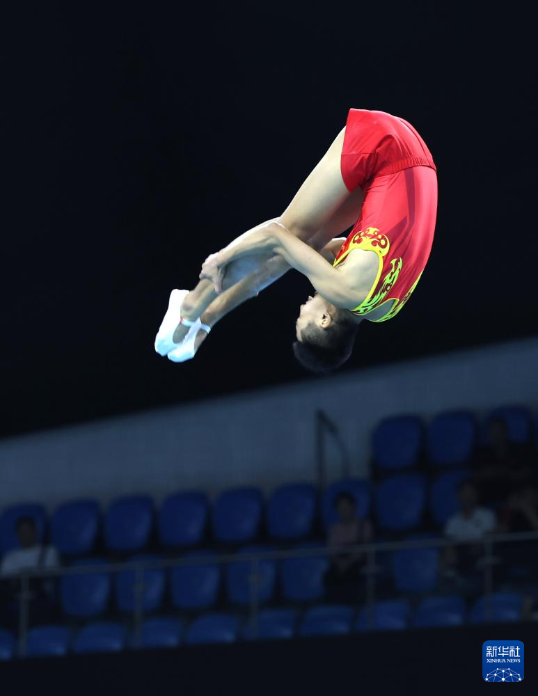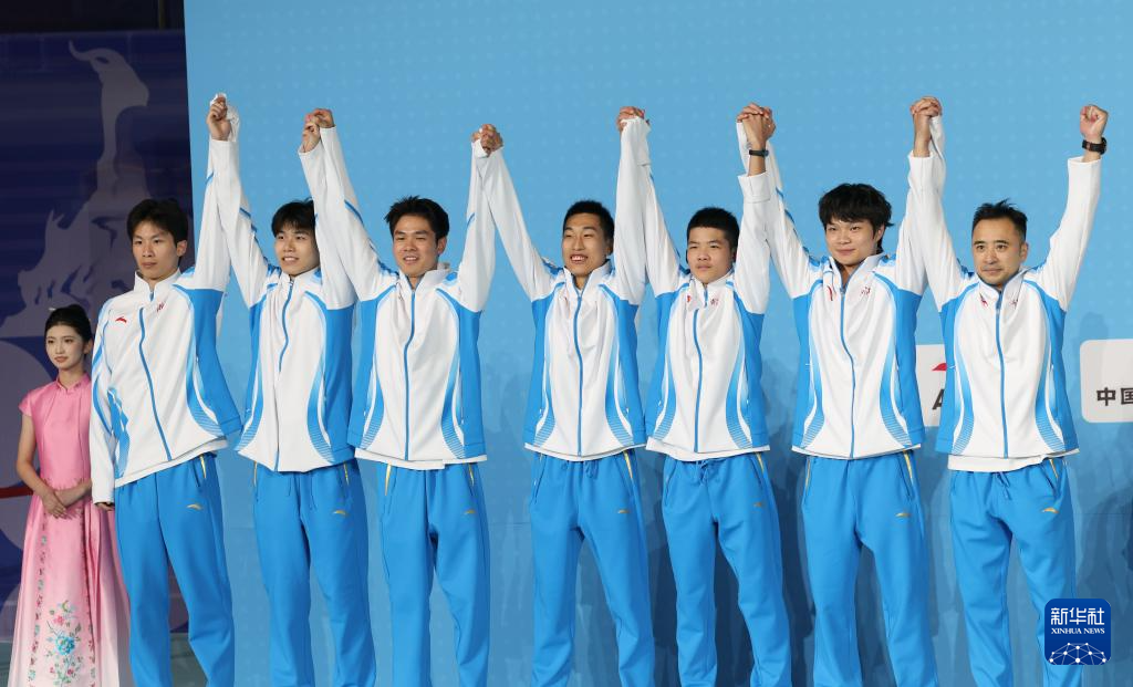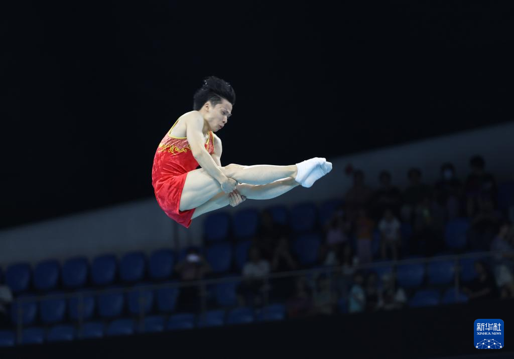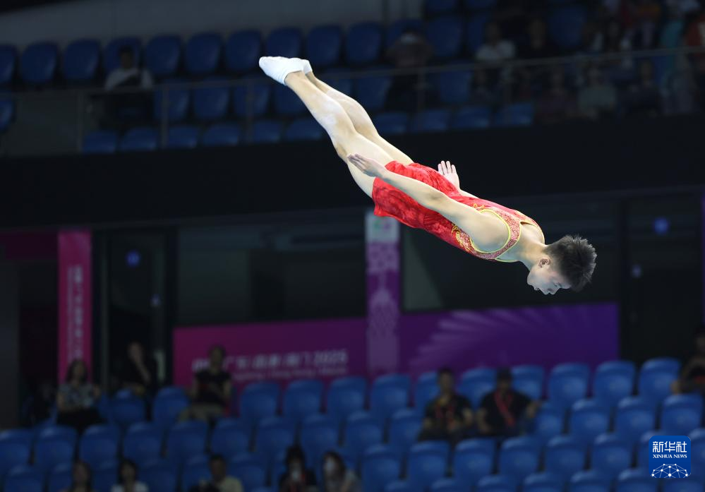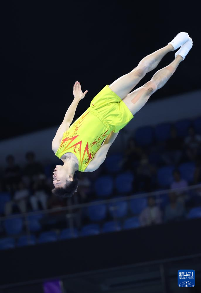 当日,第十五届全运会蹦床男子团体决赛在广州举行。