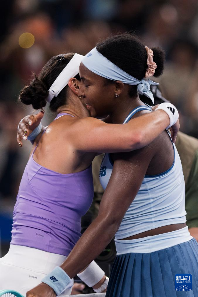 10月12日,高芙(右)和佩古拉在比赛结束后拥抱。