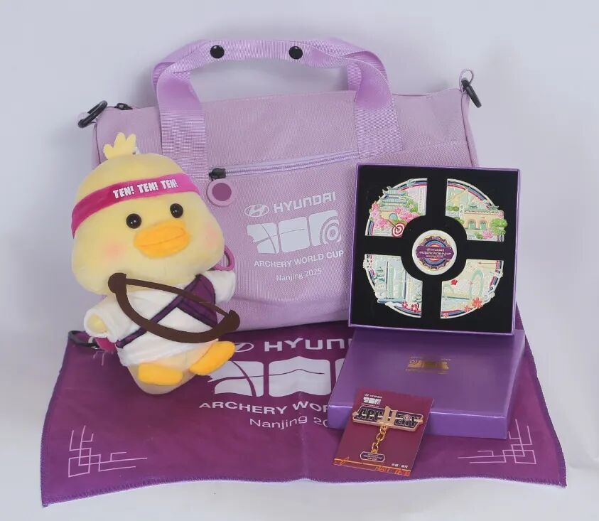 在开赛仪式上,本次现代汽车·射箭世界杯总决赛赛事专属限定特许商品也同步揭开面纱。每款商品均兼顾纪念意义与南京特色,将射箭运动的力量感与城市魅力融为一体,如金属徽章系列宛若微缩版南京风景,将紫金山、夫子庙等地标与箭靶元素巧妙结合。