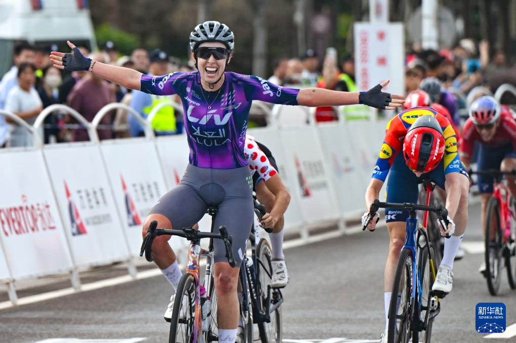 10月16日,赛段冠军丽芙-埃尔奥拉-杰科车队澳大利亚车手塔尔博特在颁奖仪式上庆祝。