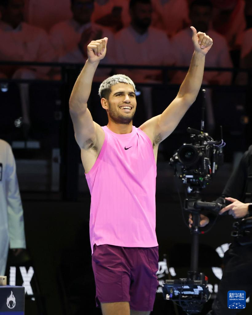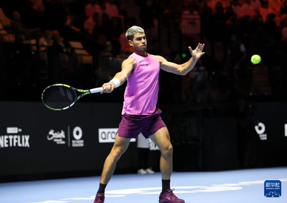 当日,在沙特阿拉伯利雅得举行的“六王大满贯”网球表演赛半决赛中,西班牙选手阿尔卡拉斯2比0战胜美国选手弗里茨,晋级决赛。