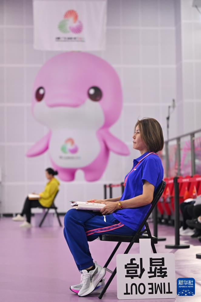 10月17日,上海队选手沈奕瑶(右)在比赛暂停时和教练交流。
