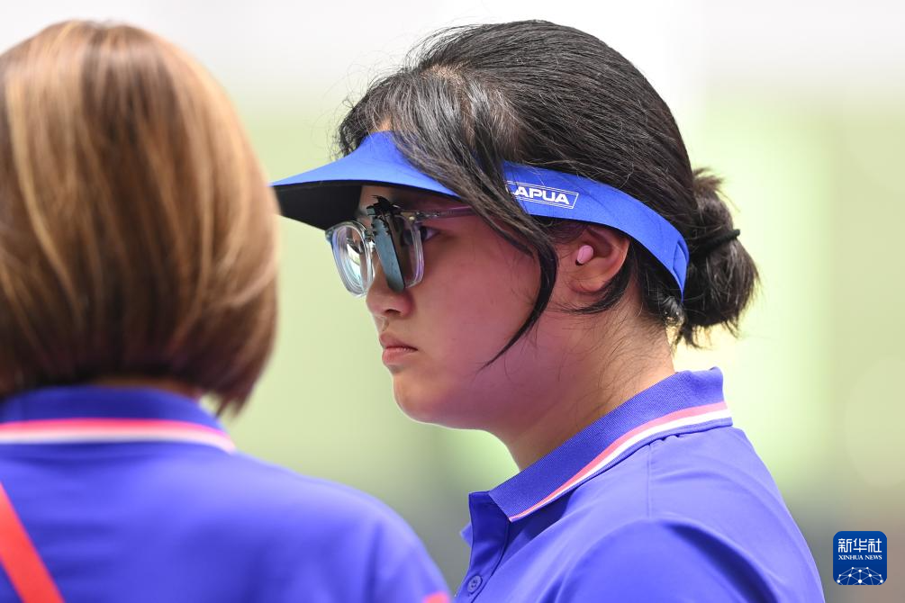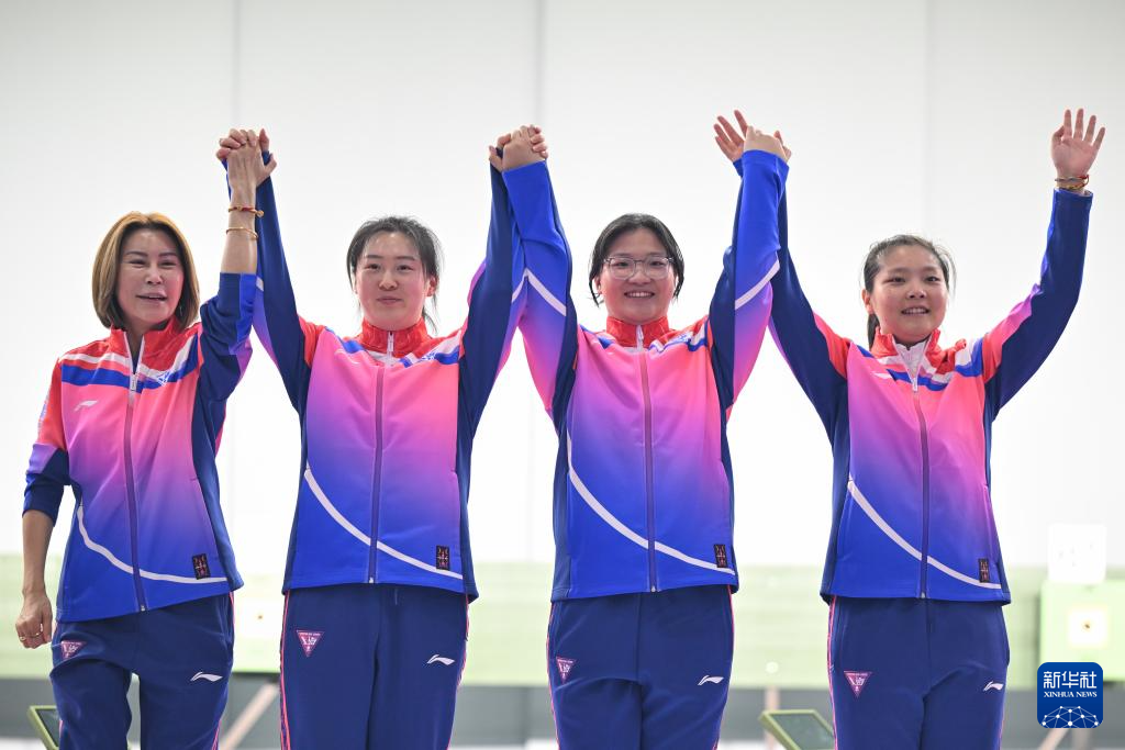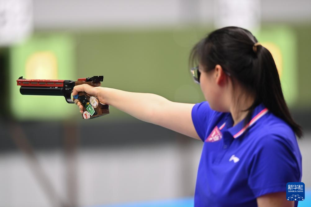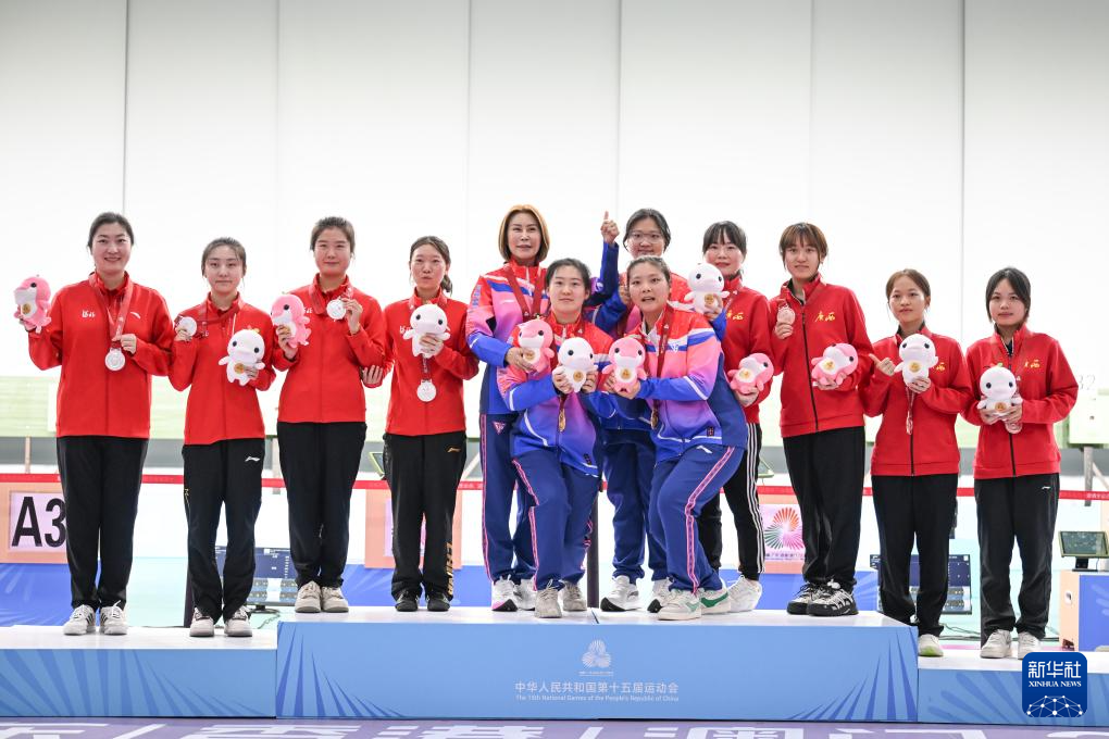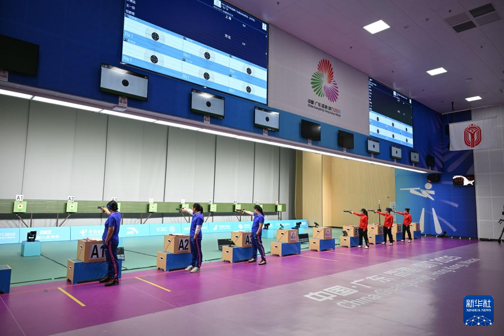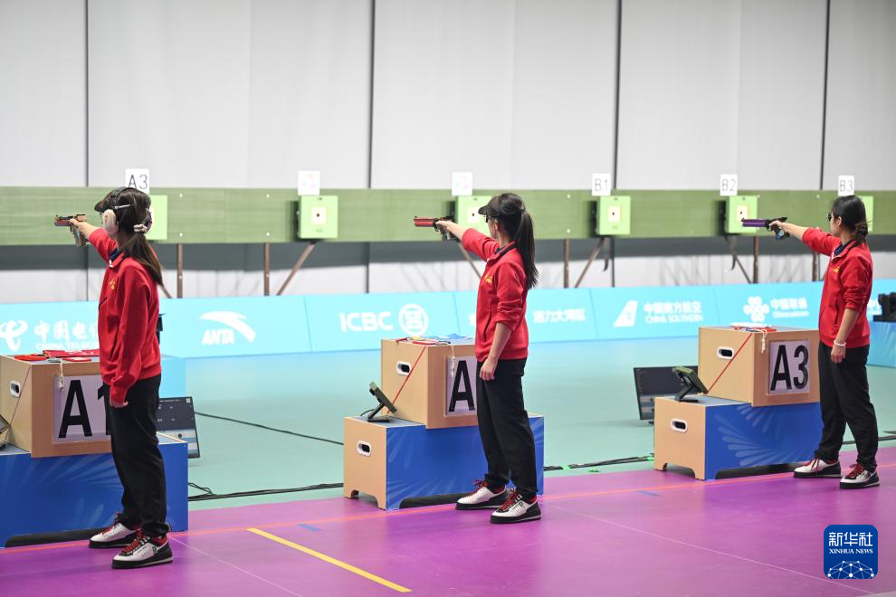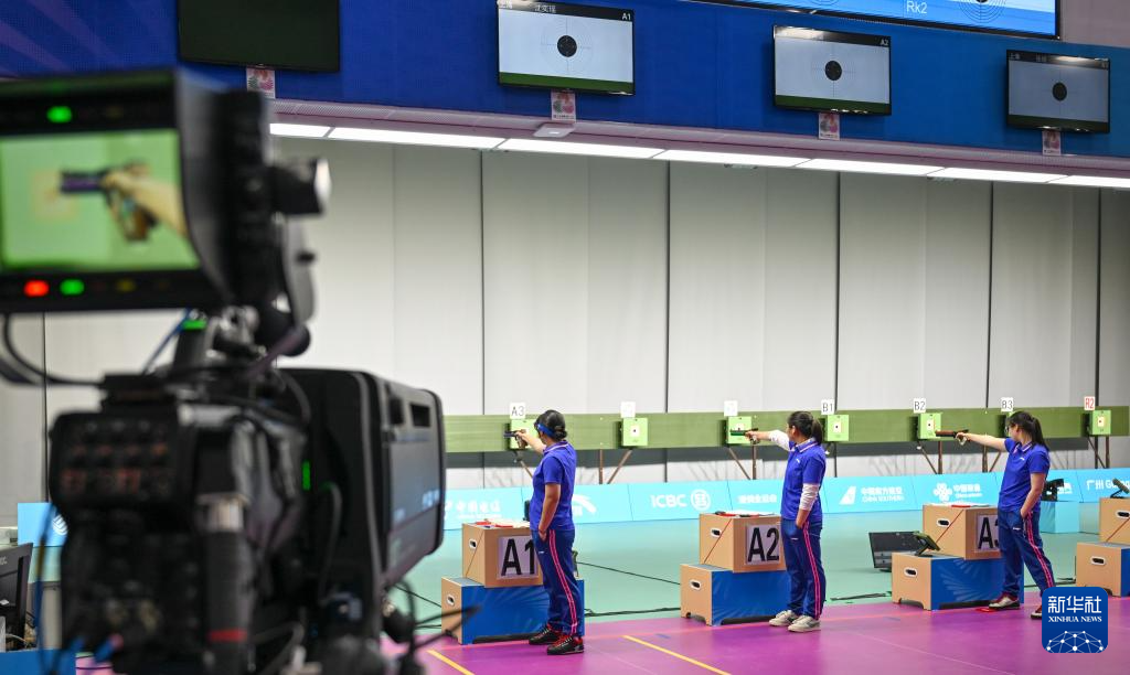 当日,第十五届全运会射击女子10米气手枪团体决赛在广州举行。