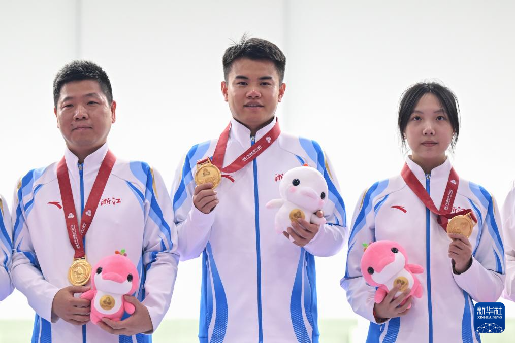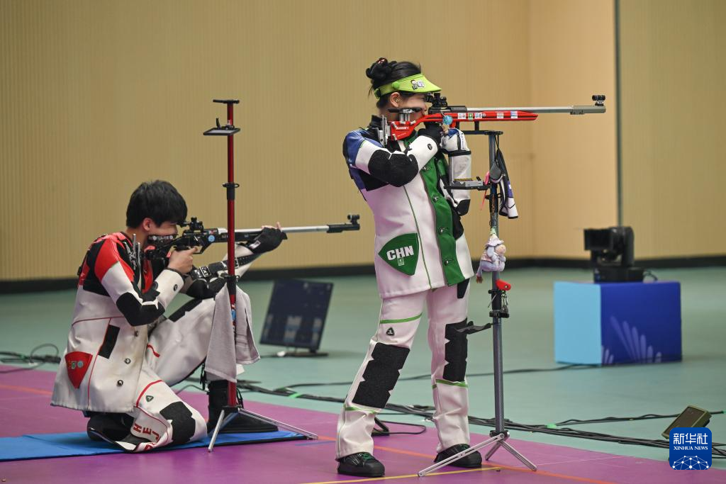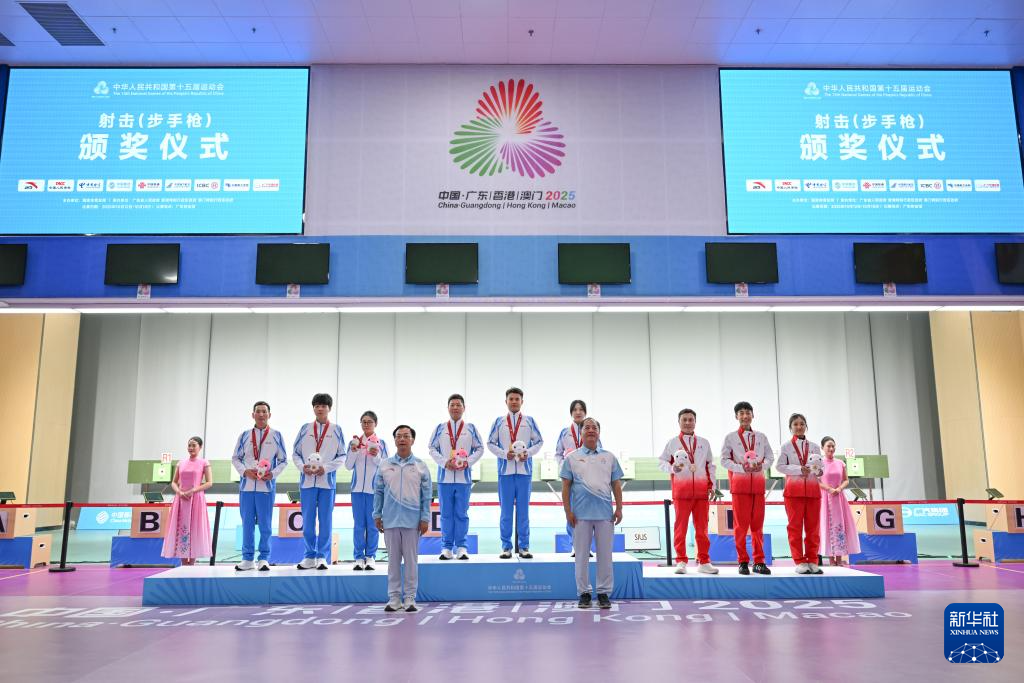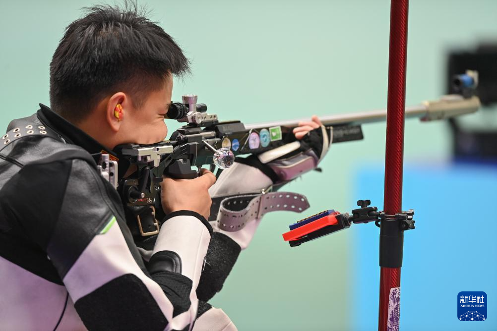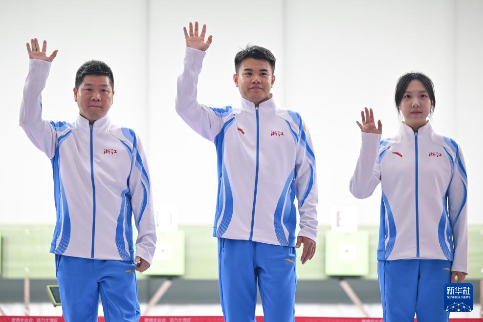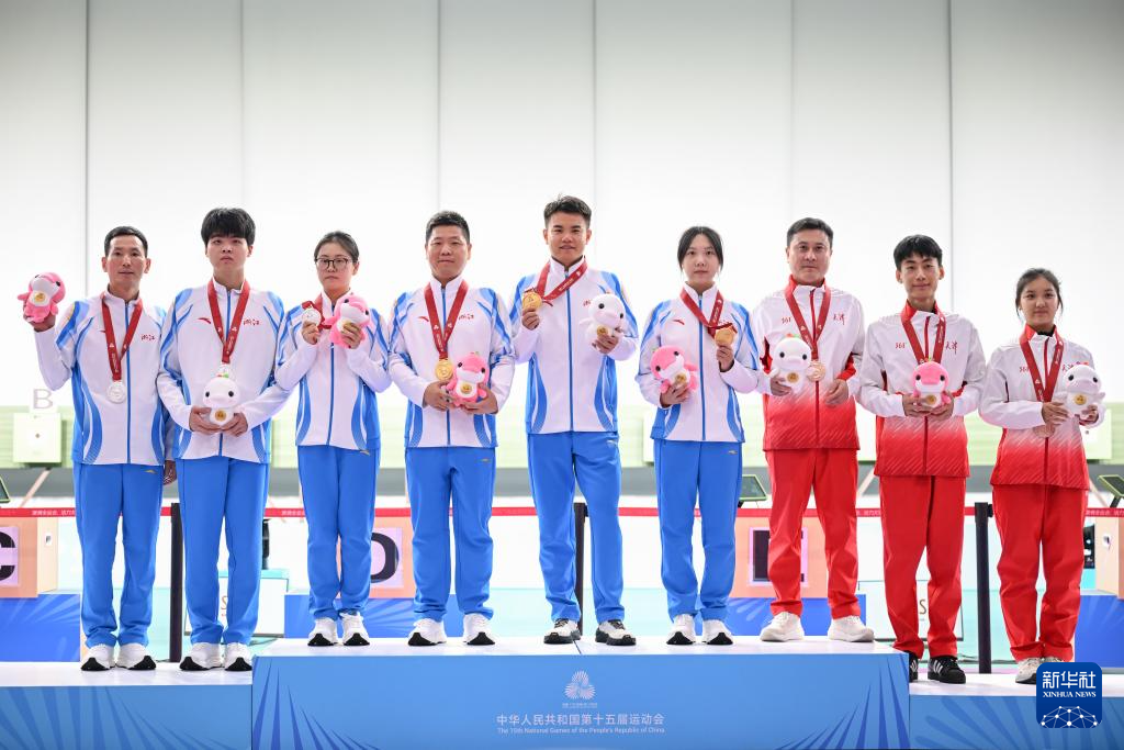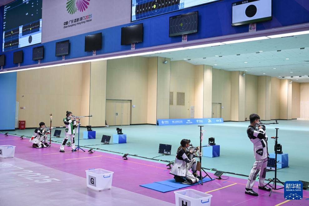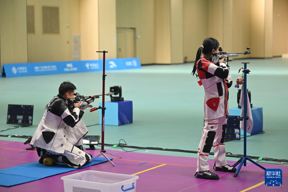 当日,第十五届全运会射击50米步枪3种姿势混合团体决赛在广州举行。