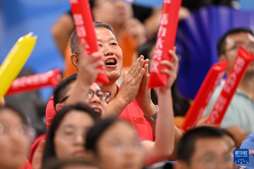 10月18日,观众在现场观看射击50米步枪3种姿势混合团体决赛。
