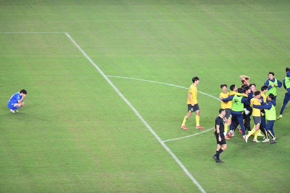 南京队和泰州队在四分之一决赛中都是通过点球大战晋级。本场点球大战,南京队第一个主罚的李加俊击中门柱,但泰州队第二个出场的巴特主罚的点球被郑豪扑住,两队重回同一起跑线。随后连续六轮两队都主罚命中,第九轮泰州队率先罚中,南京队孟振踢飞点球,泰州队9:8获胜晋级。