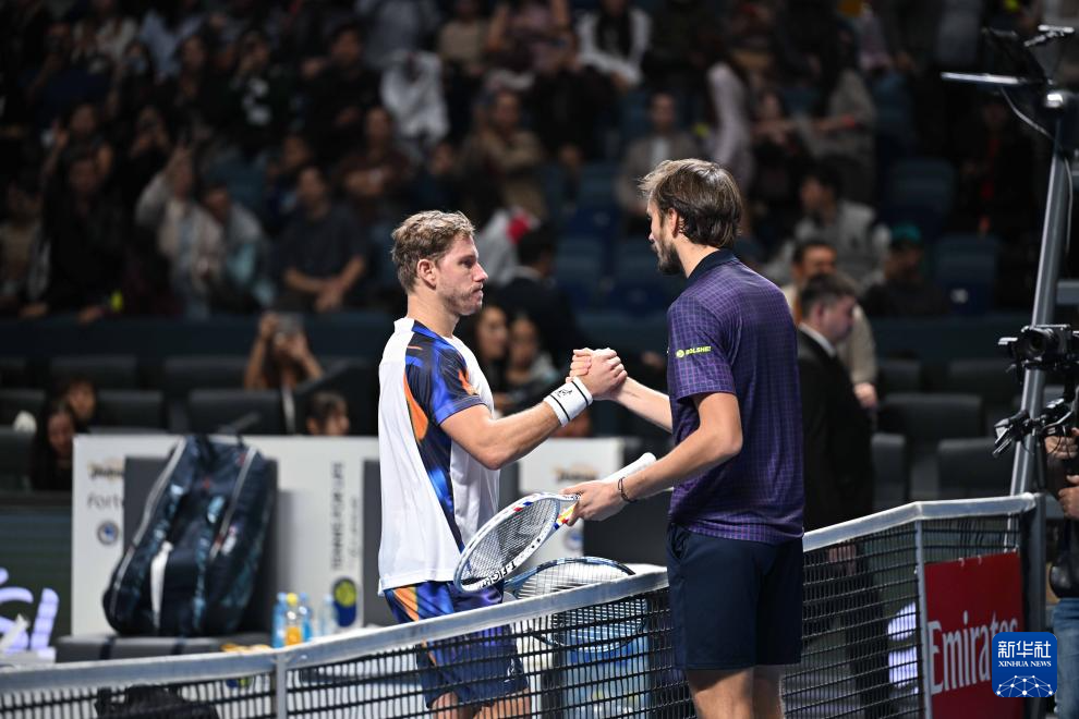10月18日,梅德韦杰夫(右)和达克沃斯在比赛后握手致意。