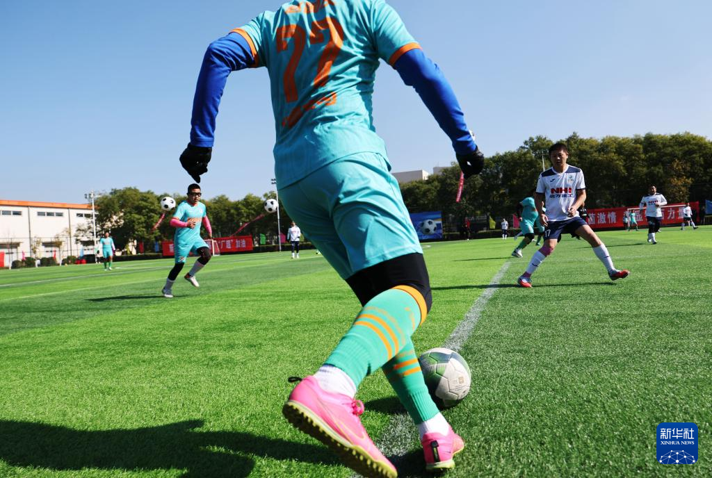 10月18日,华晨宝马汽车有限公司足球队球员赵国庆(前)在决赛中带球突破。