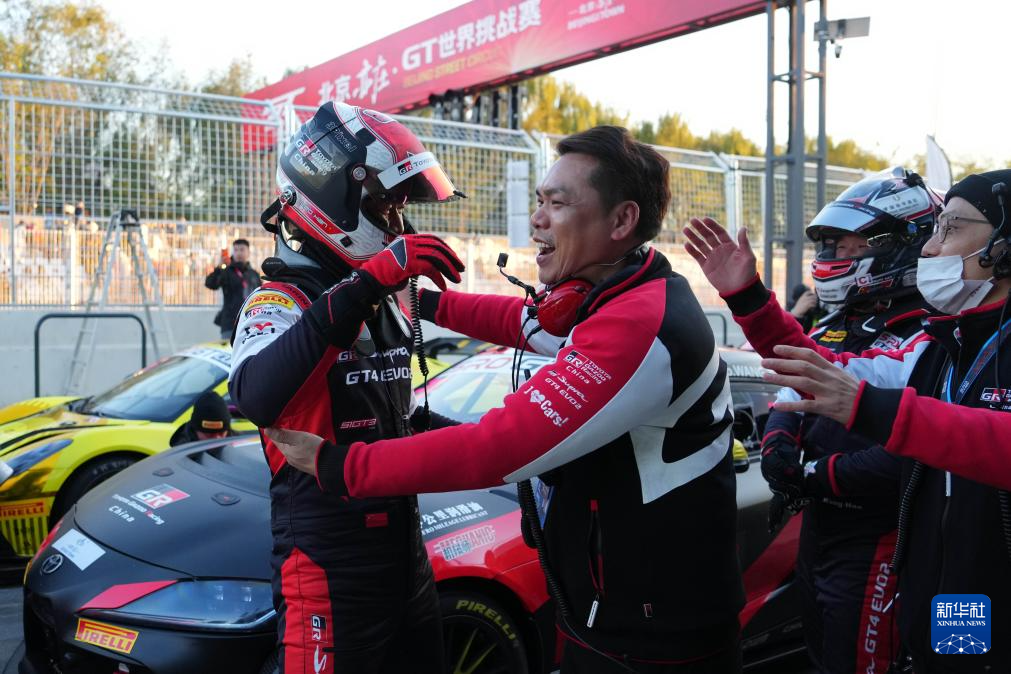 10月19日,本轮比赛Silver组别冠军丰田GAZOO中国车队中国车手韩坜潮(右)与亚军丰田GAZOO中国车队中国车手王浩在颁奖仪式上庆祝。