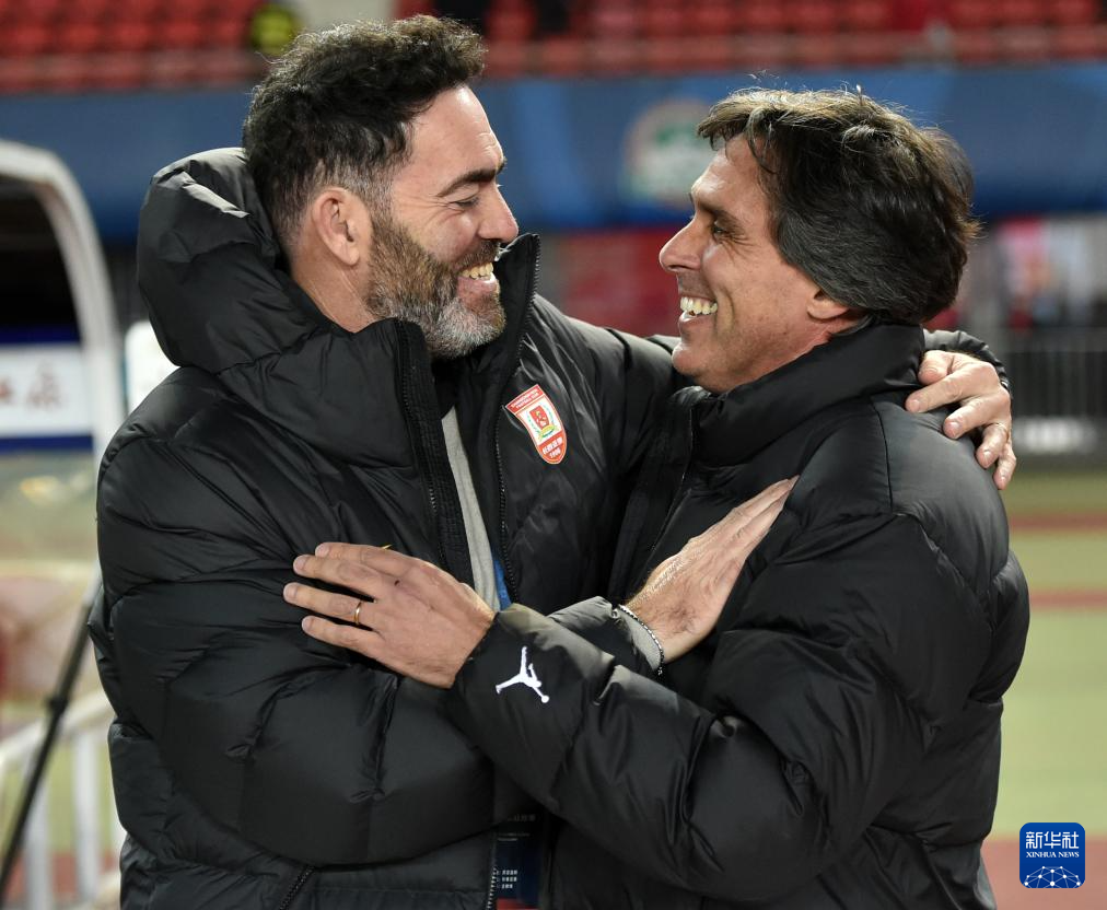 10月19日,河南俱乐部酒祖杜康队主教练丹尼尔·拉莫斯(右)与长春亚泰队主教练苏亚雷斯在比赛前相互致意。