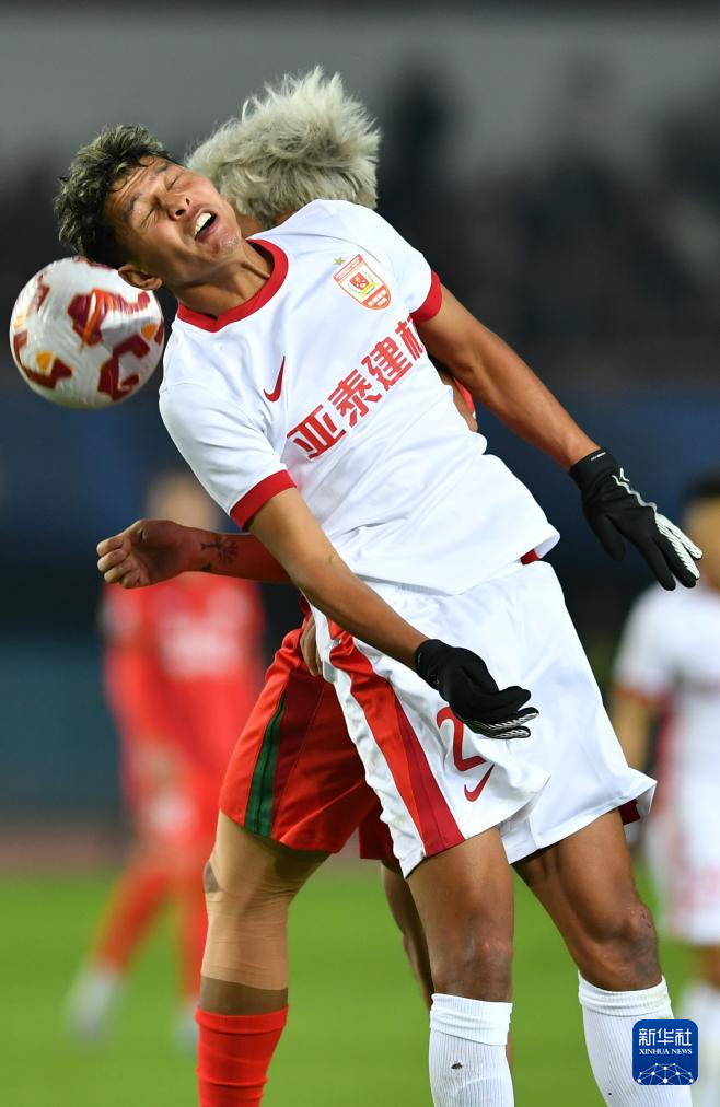 10月19日,长春亚泰队球员阿不都海米提·阿不都格尼在比赛中争顶。