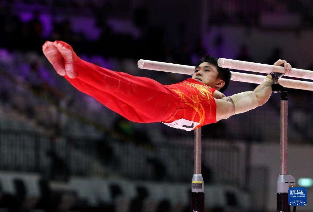 10月22日,中国选手侍聪在男子个人全能决赛双杠项目比赛中。最终,他获得第四名。