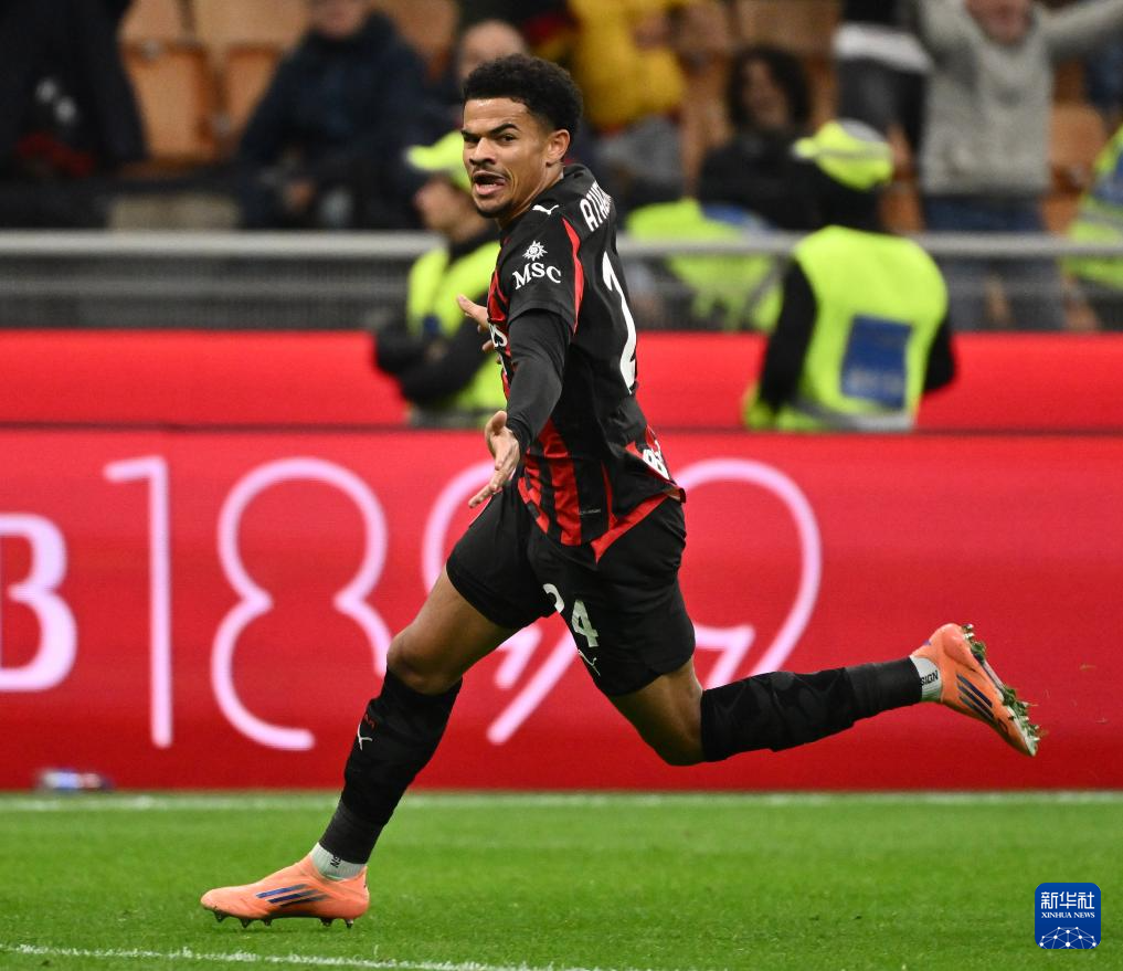 10月24日,AC米兰队球员阿特卡梅在比赛中庆祝进球。
