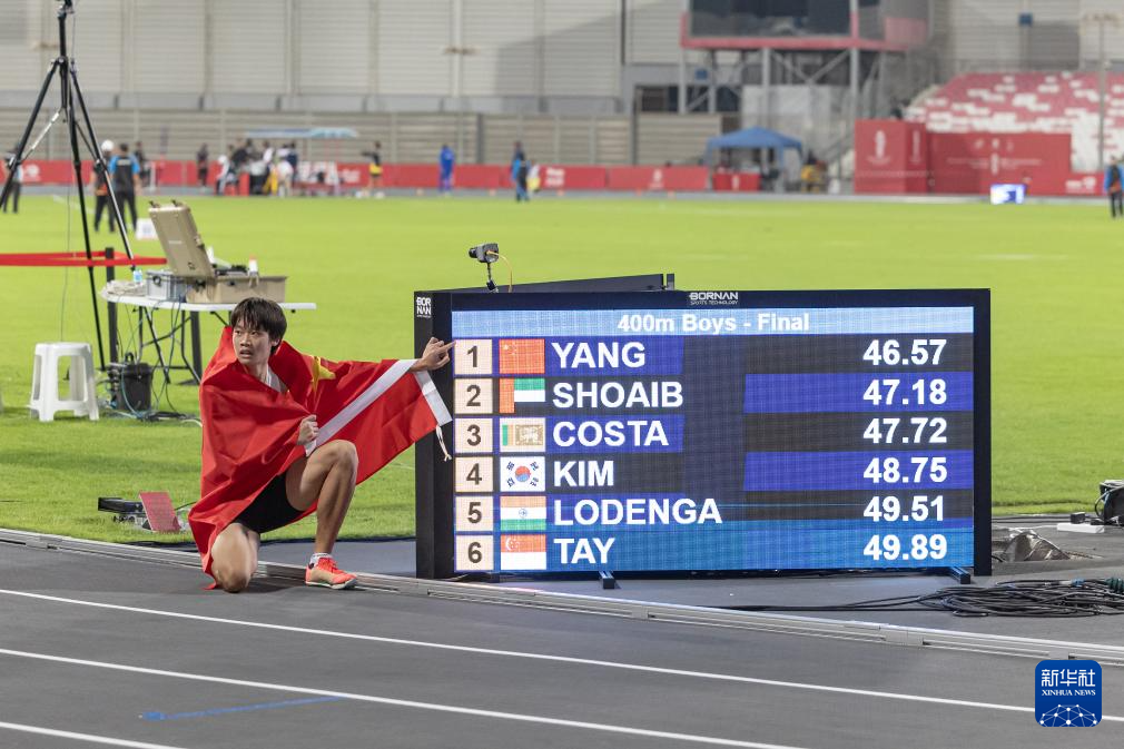 当日,在巴林举行的第三届亚洲青年运动会男子400米比赛中,中国选手杨嘉夺得冠军。